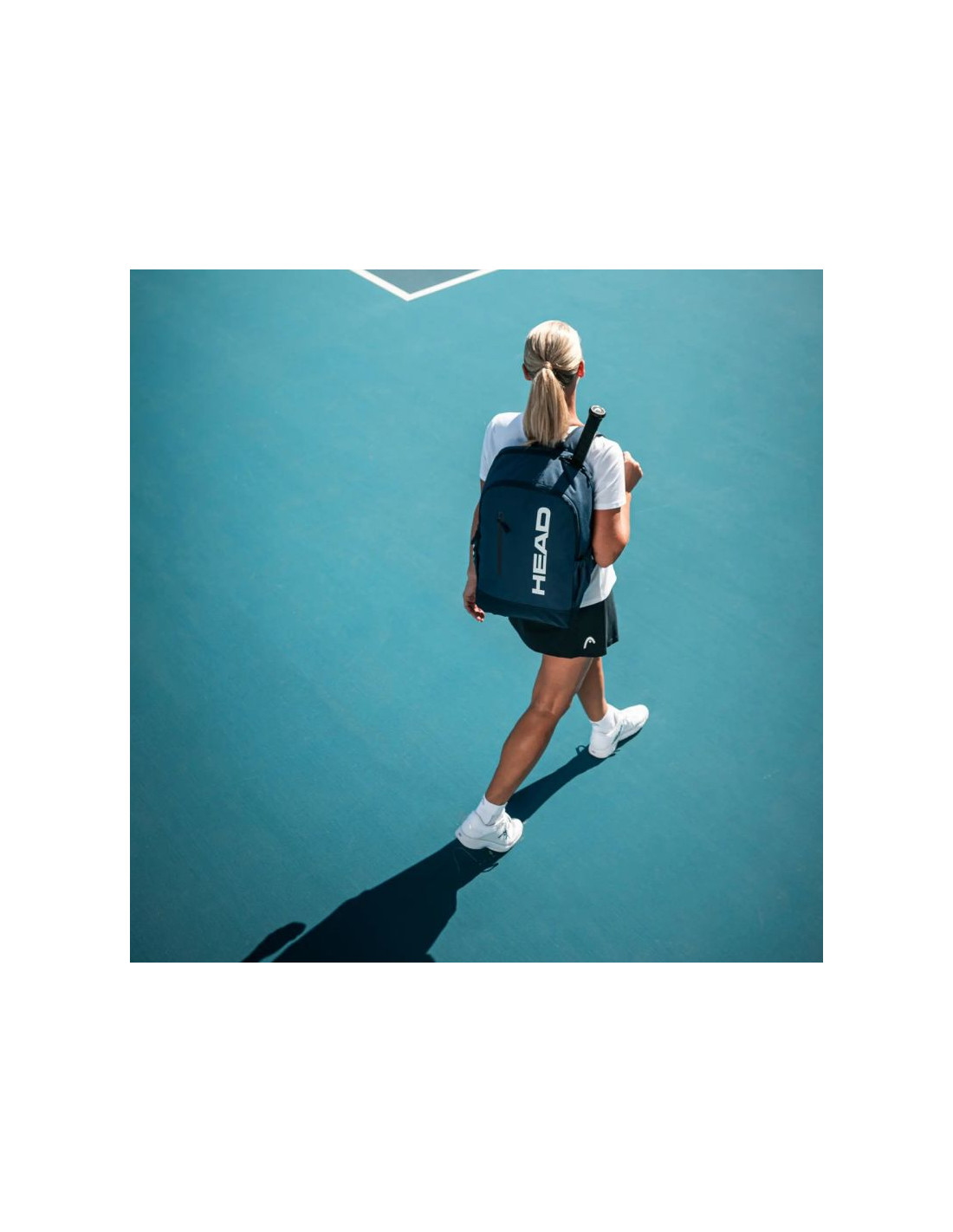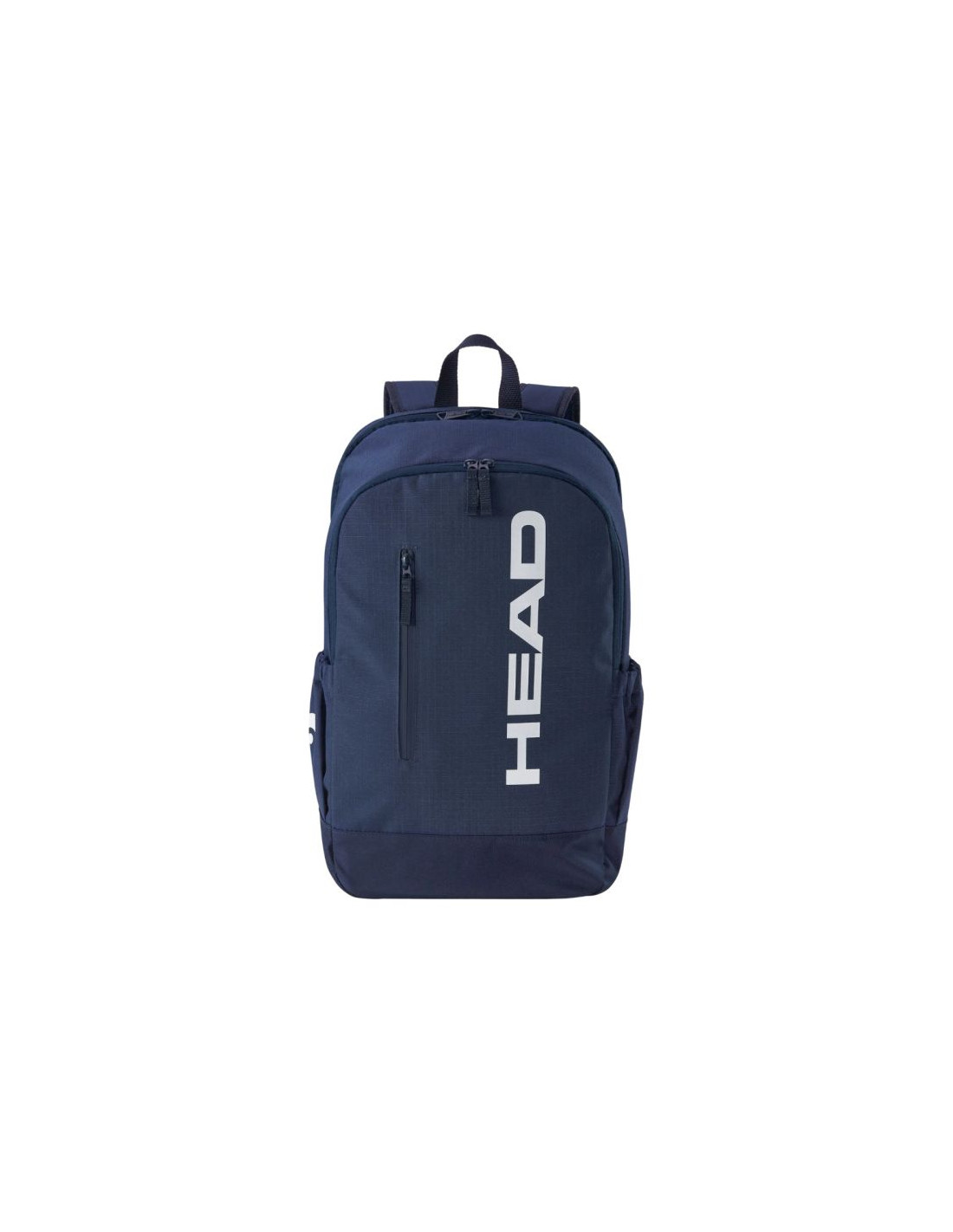 Plecak Head Base 17 l granatowy 261335  Pojemny i stylowy plecak tenisowy Head. Komora na rakiety pomieści do 2 rakiet. Komora główna, w której zmieści się np. zmiana odzieży. Jedna, mała kieszeń frontowa zapinana na suwak. Dwie otwarte kieszenie po bokach. Siateczkowe plecy wspomagają wentylację. Komfortowe, miękki, regulowane szelki.  Dane techniczne:· Materiał: 100% poliester· Pojemność 17 l· Wymiary: 54 x 33 x 13 cm· Komora główna, komora na 1-2 rakiety, kieszeń przednia zapinana i dwie kieszenie boczne otwarte