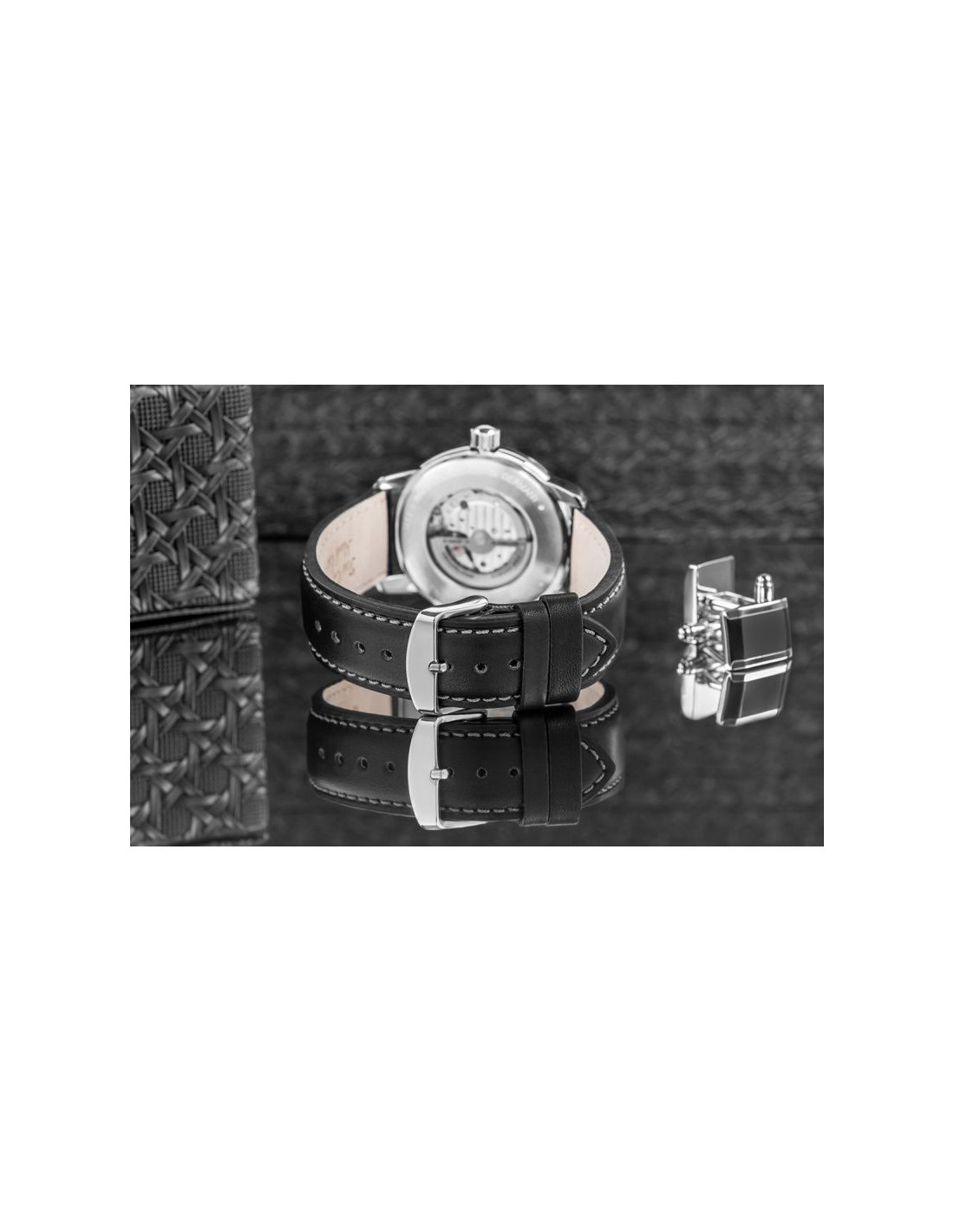 Przezroczysty dekiel, który odsłania precyzyjnie wykonany automatyczny mechanizm, to subtelny detal, który w pełni podkreśla prestiżowy charakter zegarka. Dzięki temu wyjątkowemu rozwiązaniu, możesz podziwiać mistrzowską pracę mechanizmu w każdej chwili, co nadaje zegarkowi jeszcze większego wyrafinowania. Takie rozwiązanie to ukłon w stronę tradycji zegarmistrzowskich, które opierają się na precyzji mechaniki i wysokiej jakości rzemiośle.