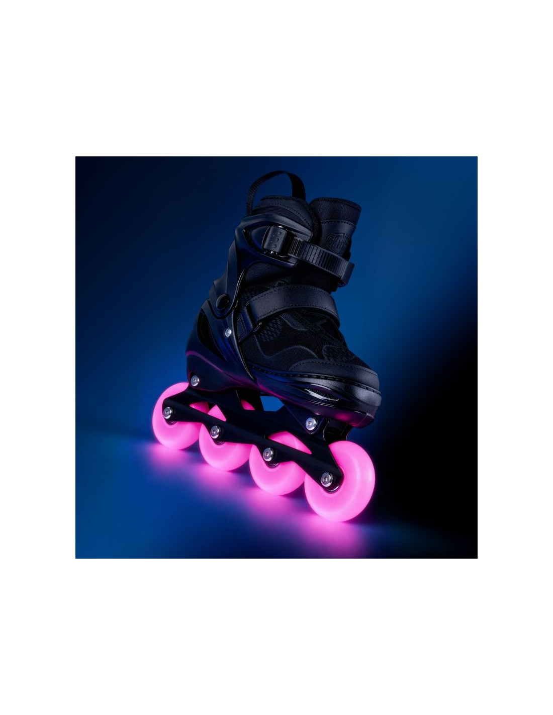 Młodzieżowe rolki z regulowanym butem typu semi-soft, który zapewnia wygodę i dobre dopasowanie. Lekka, aluminiowa płoza zwiększa stabilność i wytrzymałość podczas jazdy. Kółka z poliuretanu (PU) o twardości 82A zapewniają dobrą przyczepność i tłumienie drgań. Wyposażone w świecące diody LED w kółkach, które uruchamiają się podczas jazdy. Łożyska ABEC-7 Carbon gwarantują płynną i cichą jazdę. Hamulec z trwałego tworzywa TPR umożliwia skuteczne hamowanie. Potrójny system zapięcia – klamra, rzep i sznurowadła – zapewnia stabilne trzymanie stopy. Parametry: But: semi-soft, regulowany Materiał buta: poliester, PP Materiał płozy: aluminium Materiał kółek: PU Twardość kółek: 82A Średnica kółek: 70 mm (35-38) / 72 mm (39-42) Świecące z diodami LED: tak Łożyska: ABEC-7 Carbon Zapięcia: klamra dwusekcyjna, rzep, sznurowadła Rozmiary: 35-38 lub 39-42 Hamulec: TPR Max. waga użytkownika: 100 kg Polecany do: jazdy rekreacyjnej Poziom zaawansowania: początkujący, średniozaawansowany Informacje dotyczące bezpieczeństwa: Należy stosować środki ochrony indywidualnej. Nie nadaje się dla osób o masie ciała większej niż 60 kg. Nie używać w ruchu ulicznym. Nie do użytku komercyjnego.
