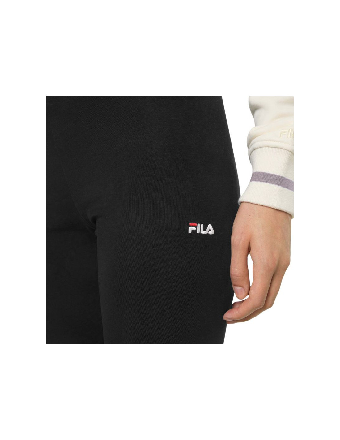 Legginsy damskie Fila Casania czarne FAW1313 80010 Legginsy damskie Fila sprawdzą się na co dzień. Fason z elastyczną talią. Wyszywane logo na lewej nogawce. Mieszanka materiałów odpowiada na naturalną wentylację ciała i dopasowanie. Materiał główny: 93% bawełna, 7% elastan