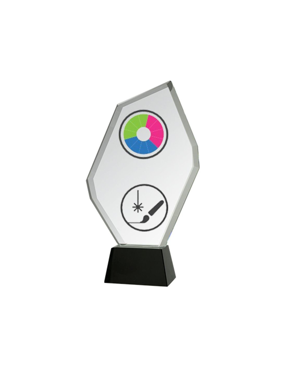Trofeum szklane z nadrukiem kolorowym LuxorJet, grawerowaniem oraz wypełnieniem farbą i etui H-29cm