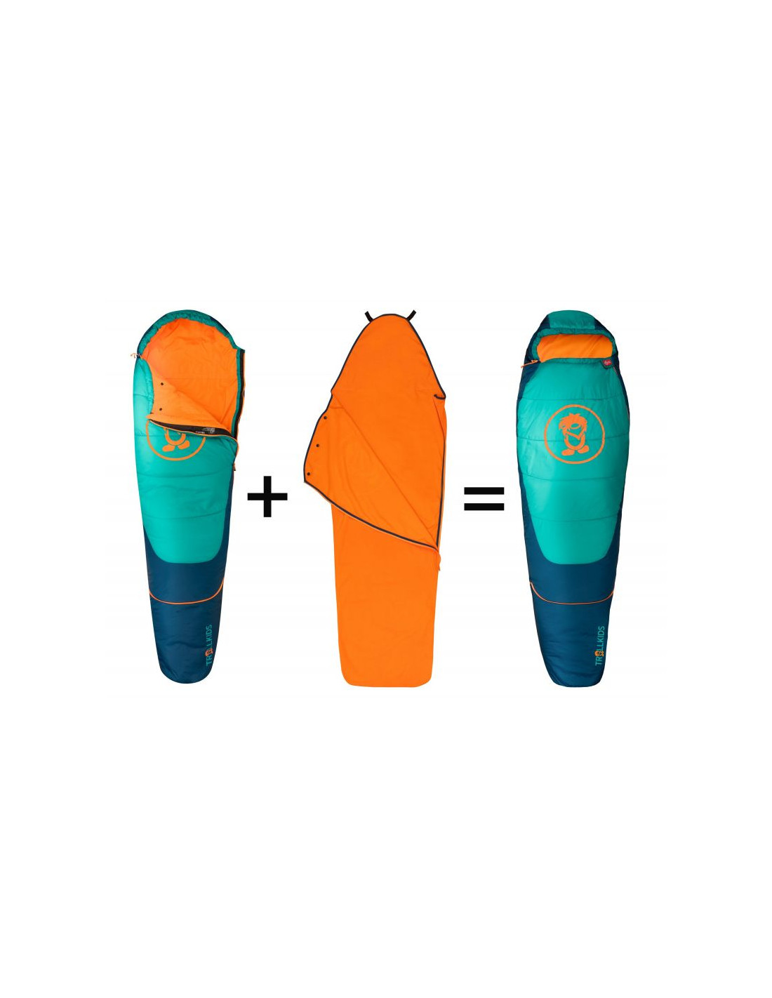 Śpiwór trollkids femund 3in1 zielony morski/niebieski madeirowski/zachód słońca na saharze (695-358)