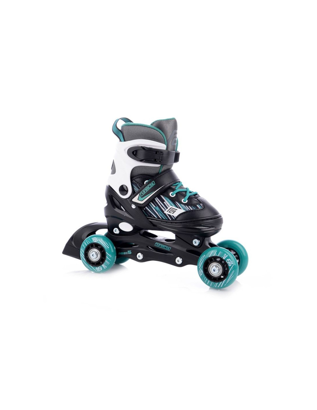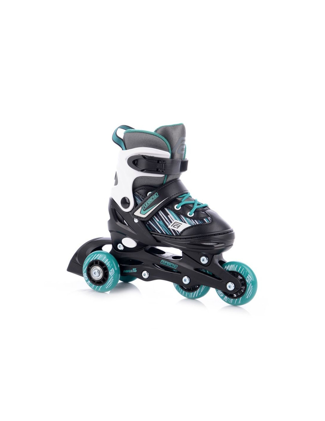 Łyżwy/Rolki/Wrotki regulowane FunActiv Trilo 4w1 Boy Stabilność, nauka i rozwój w jednym modelu Łyżwy/Rolki/Wrotki dziecięce z możliwością zmiany konfiguracji kół to wszechstronny model stworzony z myślą o najmłodszych użytkownikach. Dzięki kilku wariantom ustawienia kół rolki pozwalają dopasować poziom trudności do umiejętności dziecka. Idealne od pierwszych prób jazdy aż po bardziej zaawansowane poruszanie się. Zmiana konfiguracji jest szybka i prosta, co sprawia, że rolki „rosną” razem z umiejętnościami dziecka, zapewniając długotrwałe i bezpieczne użytkowanie. Główne cechy: 3 konfiguracje jazdy: Inline – klasyczny układ kół w jednej linii dla płynnej i szybkiej jazdy. 2+2 – dwa tylne kółka obok siebie dla większej stabilności podczas nauki. Wrotki – dwa kółka z przodu i dwa z tyłu dla maksymalnej równowagi i zabawy. Łatwa zmiana ustawienia: System oparty na wymianie osi i tulejek dystansowych (w zestawie) umożliwia szybką konfigurację. Komfortowa wyściółka: Miękka i szybkoschnąca wyściółka zapewnia wygodę nawet podczas dłuższej jazdy. Stabilny system zapinania: Klamra, pasek na rzep oraz sznurówki gwarantują dobre dopasowanie i kontrolę. Hamulec TPR: Umożliwia płynne i bezpieczne zatrzymywanie. Łyżwy/Rolki/Wrotki FunActiv TRILO 4in1 Boy to idealny wybór dla dzieci rozpoczynających naukę jazdy – zapewniają bezpieczeństwo, komfort i możliwość stopniowego rozwoju umiejętności. Specyfikacja techniczna: Zalecane zastosowanie Jazda rekreacyjna, dla początkujących Skorupa Hi-impact PP, 3-częściowa Materiał wewnętrzny Wzmocniony NYLON/NYLEX, nadruk cyfrowy Płoza PP hi-impact z nadrukiem, mocowanie buta do płozy – idealna pozycja kontroli podwozia Średnica kół 64 mm – dla rozmiarów 26–29 oraz 30–33 70 mm – dla rozmiarów 34–37 Twardość kół 82A Łożyska ABEC 5 Ostrze TEMPISH UNI CARBON steel – stal powlekana Hamulec Tak System zapinania Sznurowadła, 1× klamra, 1× pasek na rzep Regulacja rozmiaru Tak Limit wagowy [kg] 60 kg
