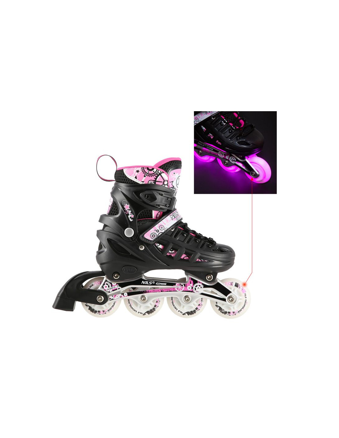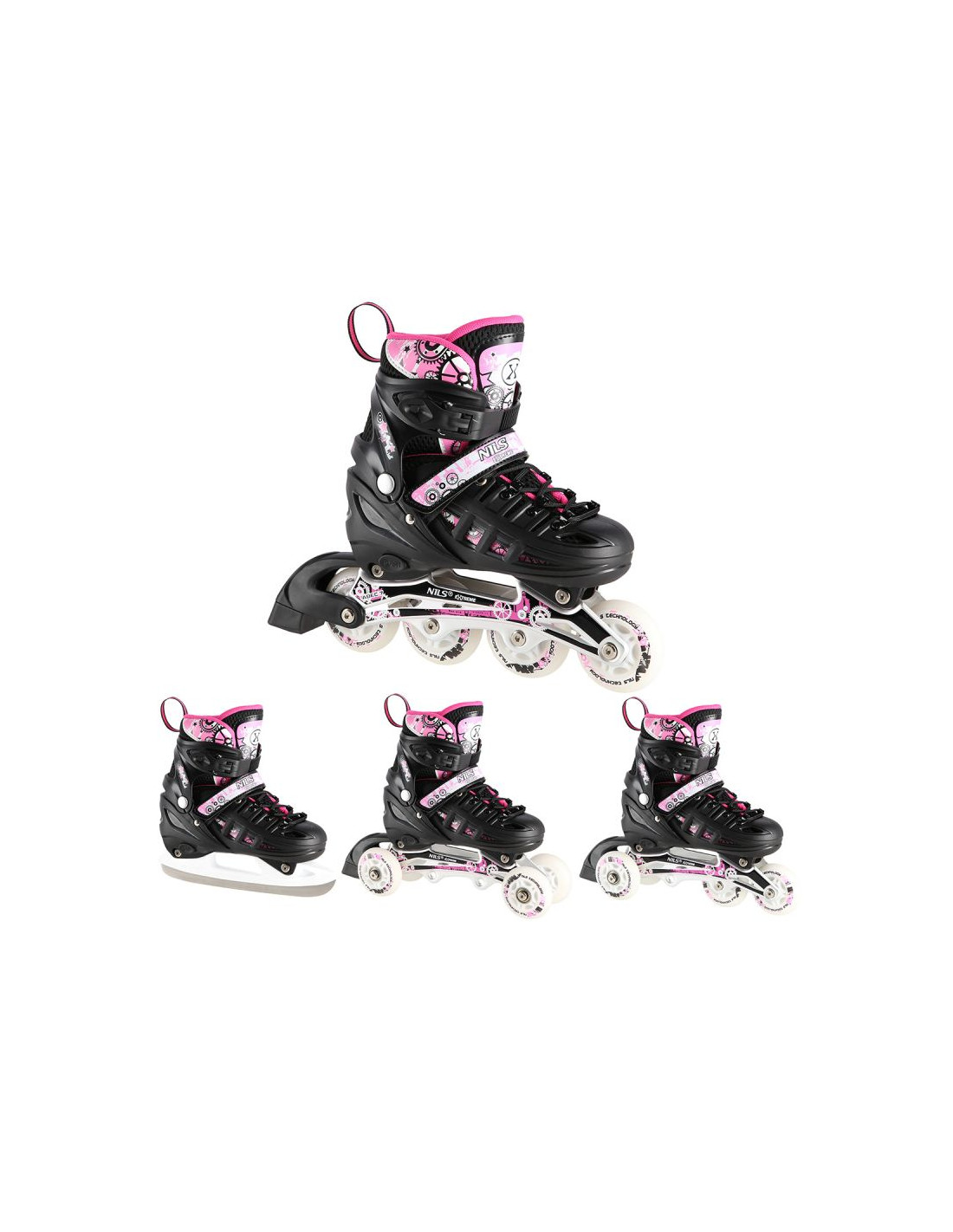 Nh10905 4w1 różowe led rozm. s(31-34) łyżworolki z wym. płozą hokejową nils extreme