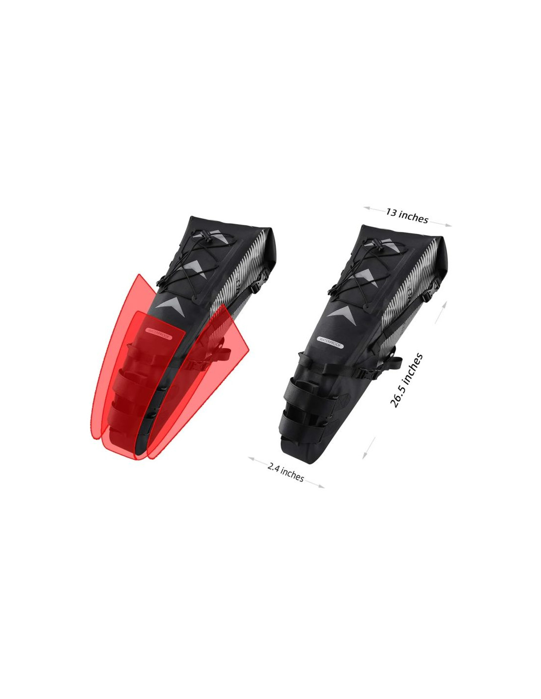 - Konstrukcja idealna do bikepackingu: wydłużony kształt pozwala efektywnie wykorzystać przestrzeń pod siodełkiem.