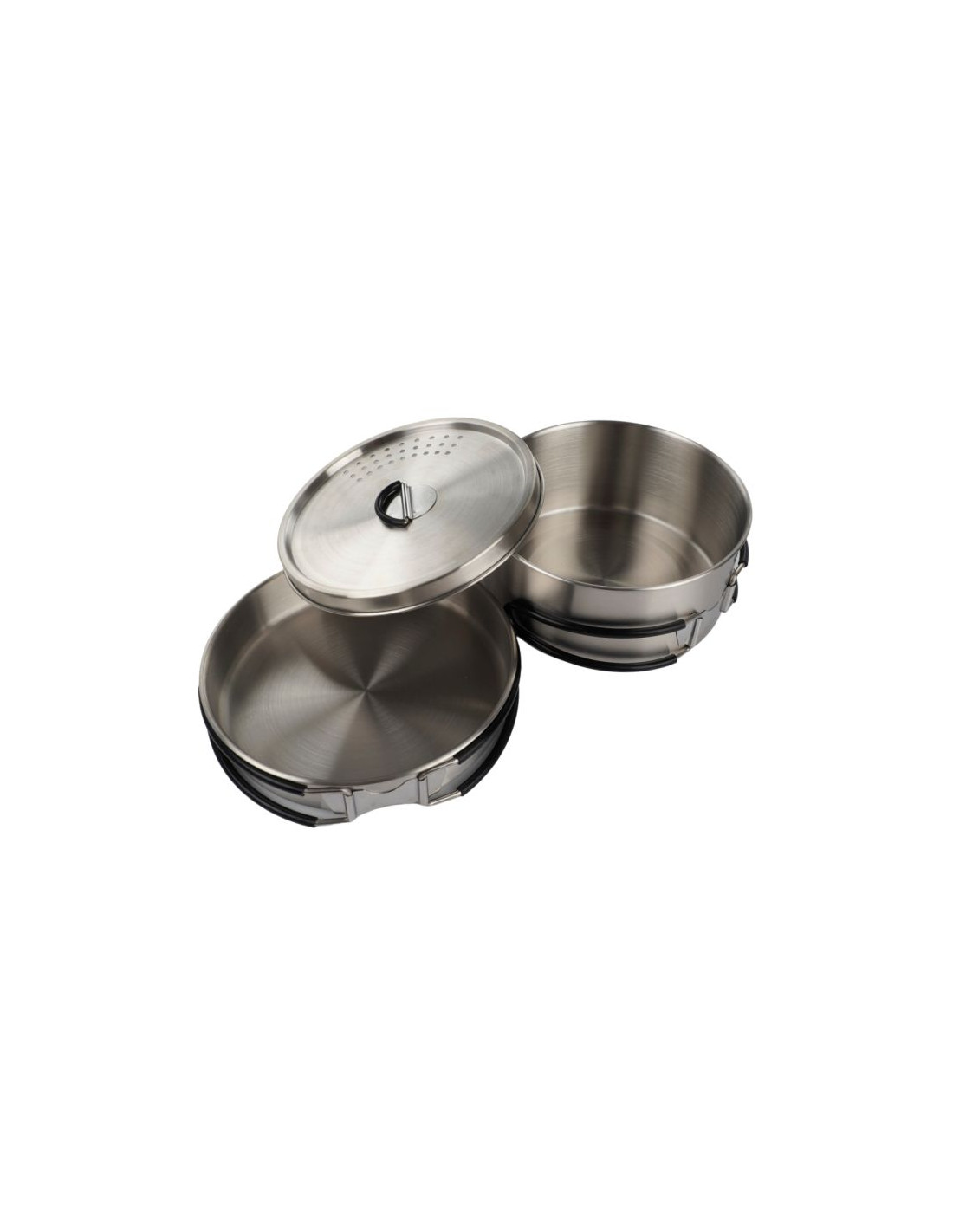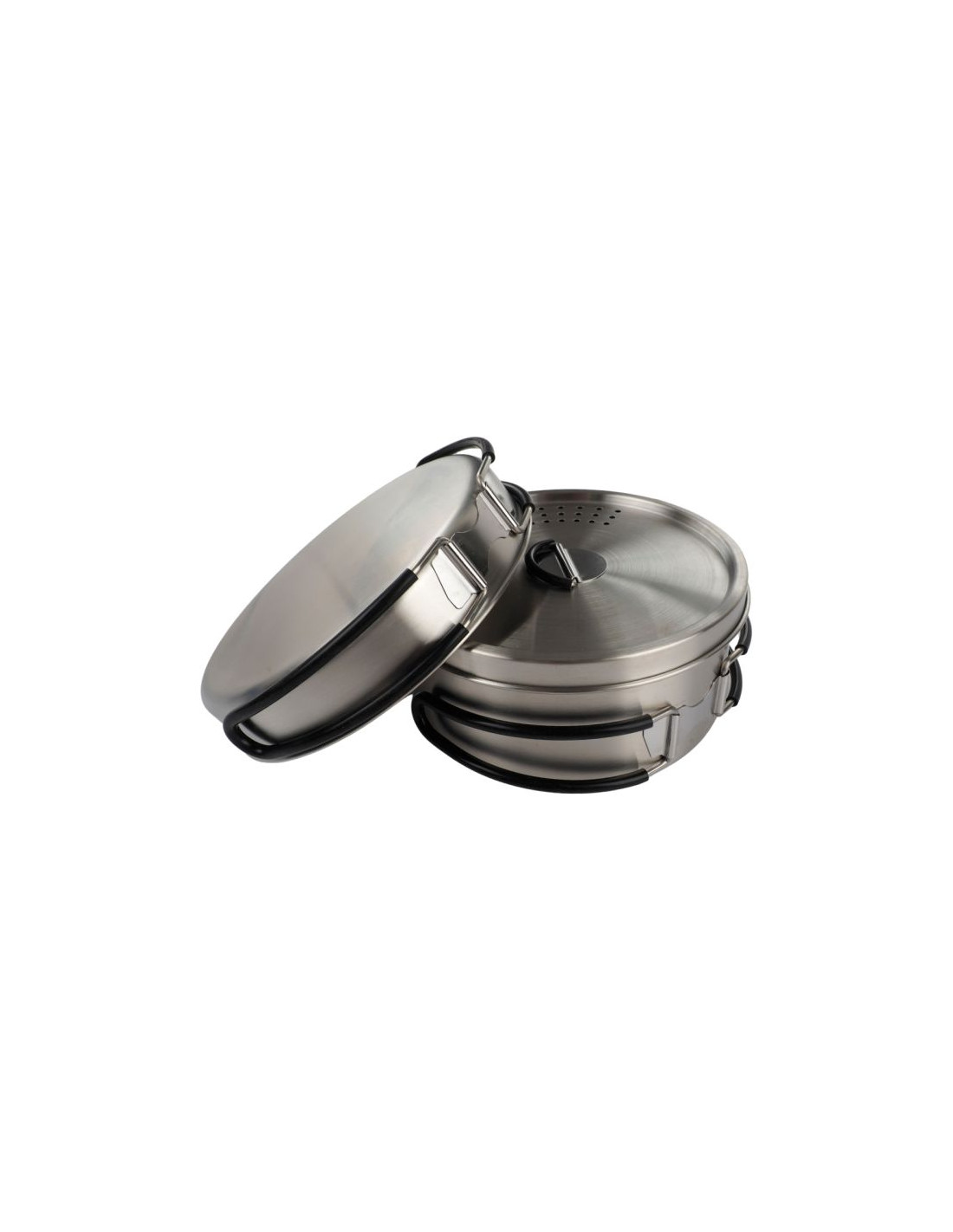 Zestaw naczyń stalowych Campingaz Trekking Kit 2197185 Zestaw turystyczny Campingaz wykonano ze stali nierdzewnej, odpornej na uszkodzenia i korozję. Silikonowe uchwyty. Lekka, kompaktowa konstrukcja ułatwia przenoszenie i przechowywanie w dołączonym pokrowcu. Naczynia są łatwe do czyszczenia. W skład zestawu wchodzą:· 1 garnek o pojemności 1 l (Ø 14,5 x 6,5 cm) z pokrywką· 1 patelnia (Ø 15,5 x 3 cm)· 1 pokrowiec