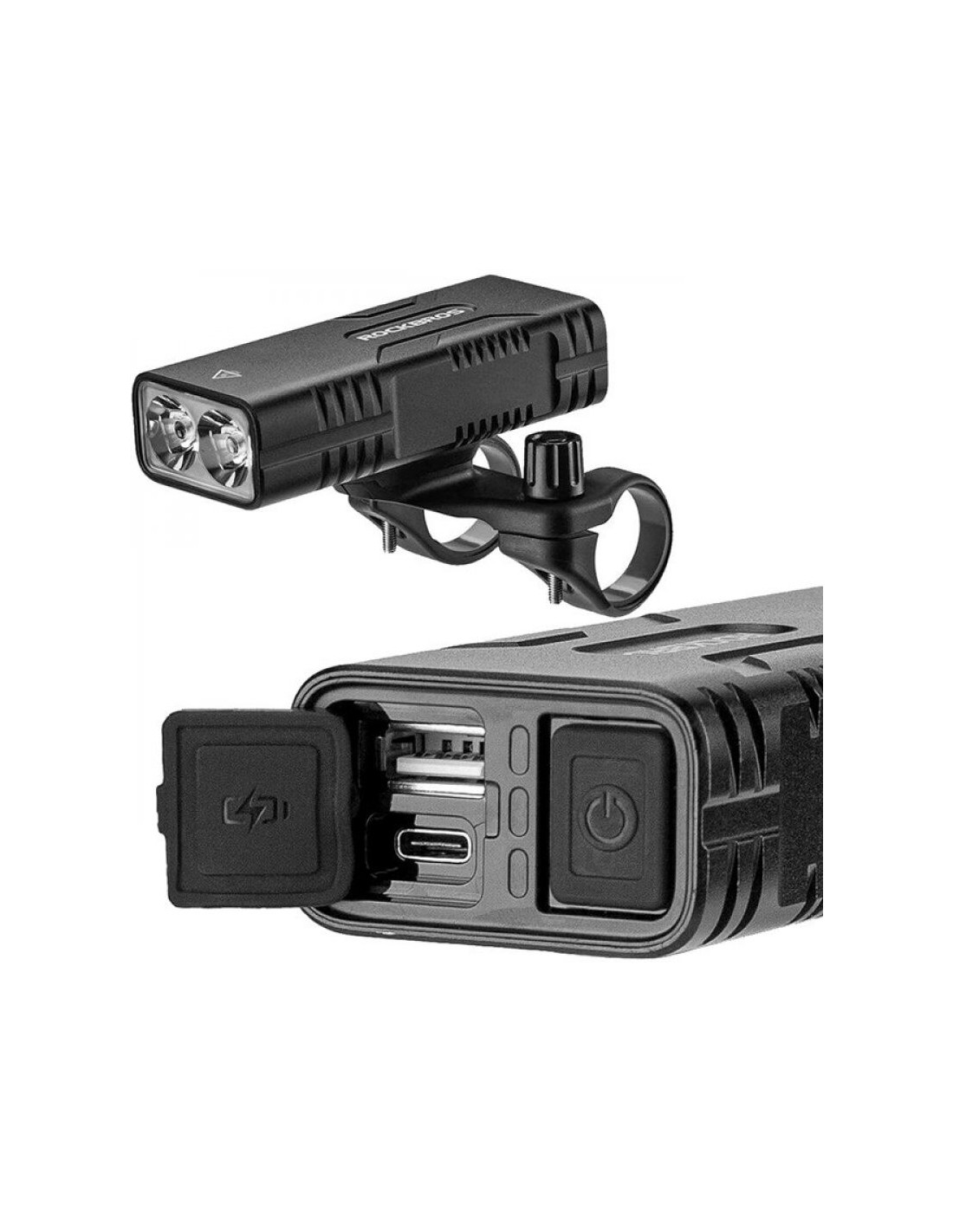 Lampka rowerowa rockbros 24310002001 850 lm z funkcją powerbanku + kabel usb-c - usb-a - czarna