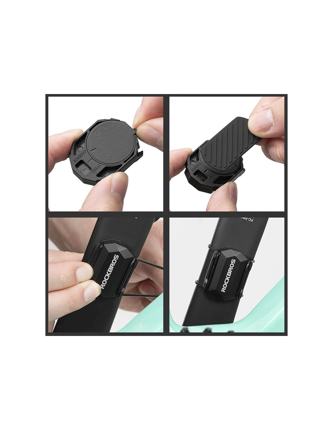 Czujnik można zamontować na piaście koła lub ramieniu korby. Elastyczne elementy mocujące ułatwiają instalację bez użycia specjalistycznych narzędzi.