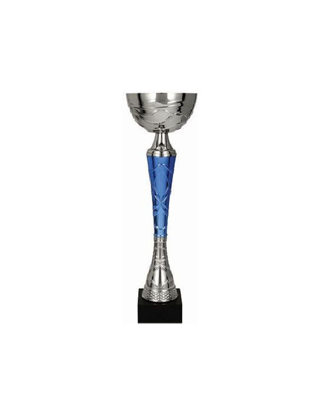 Klasyczny wzór pucharu utrzymany w kolorystyce srebrno-niebieskiej. Subtelności nadaje mu niewielki kielich z motywem fali oraz pięknie zdobiona wąska nóżka. Idealnie sprawdzi się jako trofeum wręczane podczas różnego rodzaju wydarzeń.