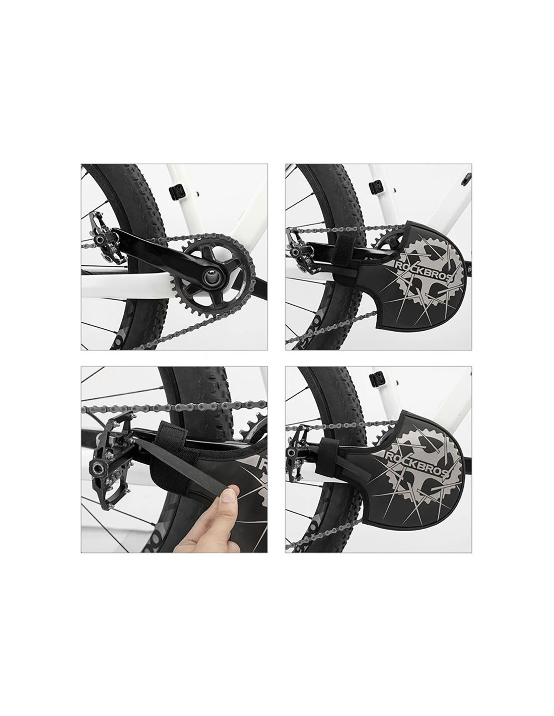 Elastyczne paski na rzep pozwalają szybko zamontować osłonę i utrzymać ją stabilnie na mechanizmie korbowym.