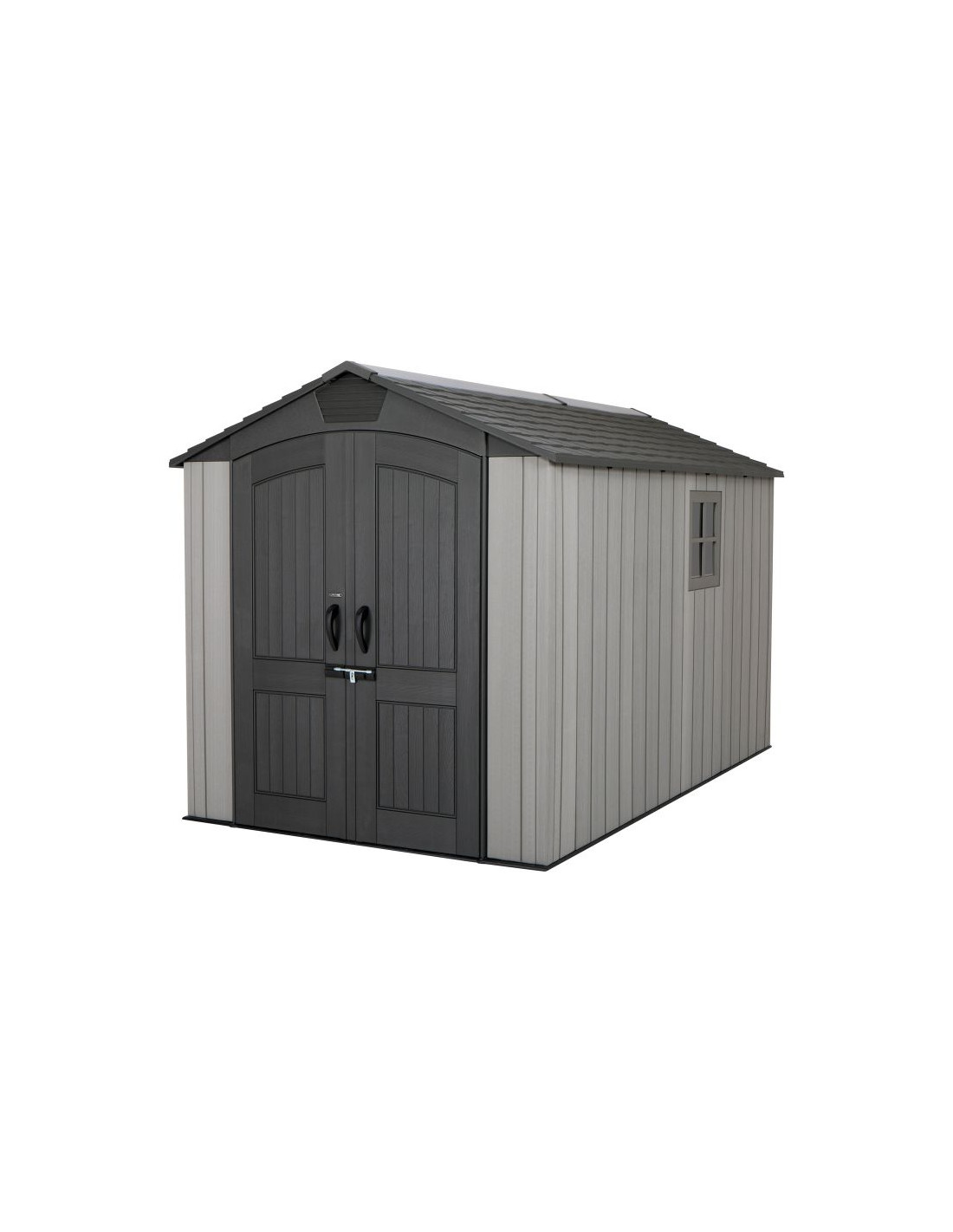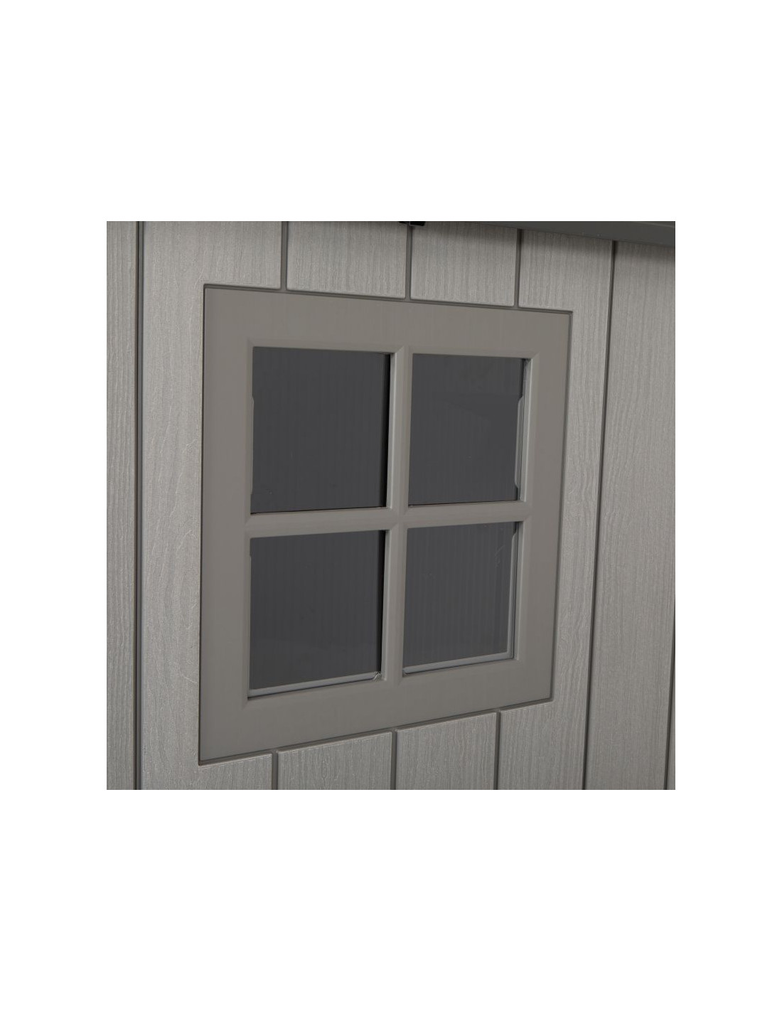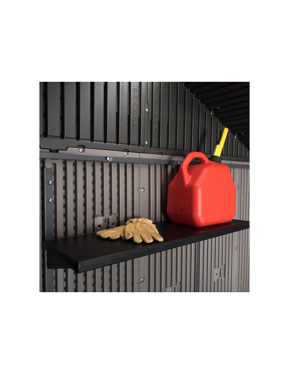 Z pomocą konfigurowalnej półki naściennej oraz półek narożnych, dopasujesz pomieszczenie wedle potrzeby, a dzięki strukturze imitującej prawdziwe drewno świetnie wkomponuje się w otoczenie ogrodu. Ściany oraz dach pokryte są warstwą ochronną odporną na promieniowanie UV, aby zapobiegać blaknięciu i pękaniu. Odporna na plamy powierzchnia nigdy nie wymaga malowania – to zdecydowana przewaga nad szopami drewnianymi!