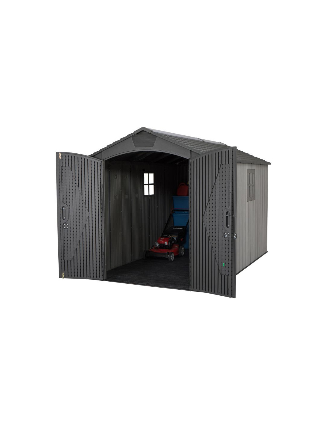Szopa ogrodowa o wymiarach 365 x 213 cm wyprodukowana przez markę Lifetime z USA to innowacyjny produkt wykonany z plastiku o wysokiej jakości – 100% polietylenu wysokiej gęstości (HDPE). Konstrukcja wzmocniona stalą sprawia, że szopa jest dużo bardziej odporna i będzie służyła na lata. Została zaprojektowana tak, aby pomieścić wszystko to, co chcesz schować ze swojego ogrodu.
