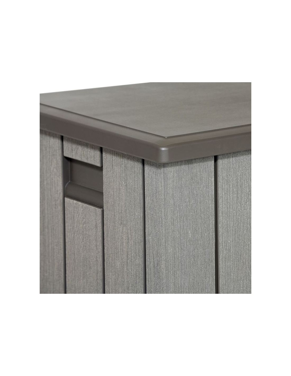 Dzięki strukturze imitującej drewno, świetnie wkomponuje się w otoczenie ogrodu lub doda tarasowi osobliwego uroku. Konstrukcja pokryta jest warstwą ochronną przed promieniowaniem UV, aby zapobiegać blaknięciu i pękaniu. Odporna na plamy powierzchnia nigdy nie wymaga malowania – to zdecydowana przewaga nad drewnianymi skrzyniami i ławami!