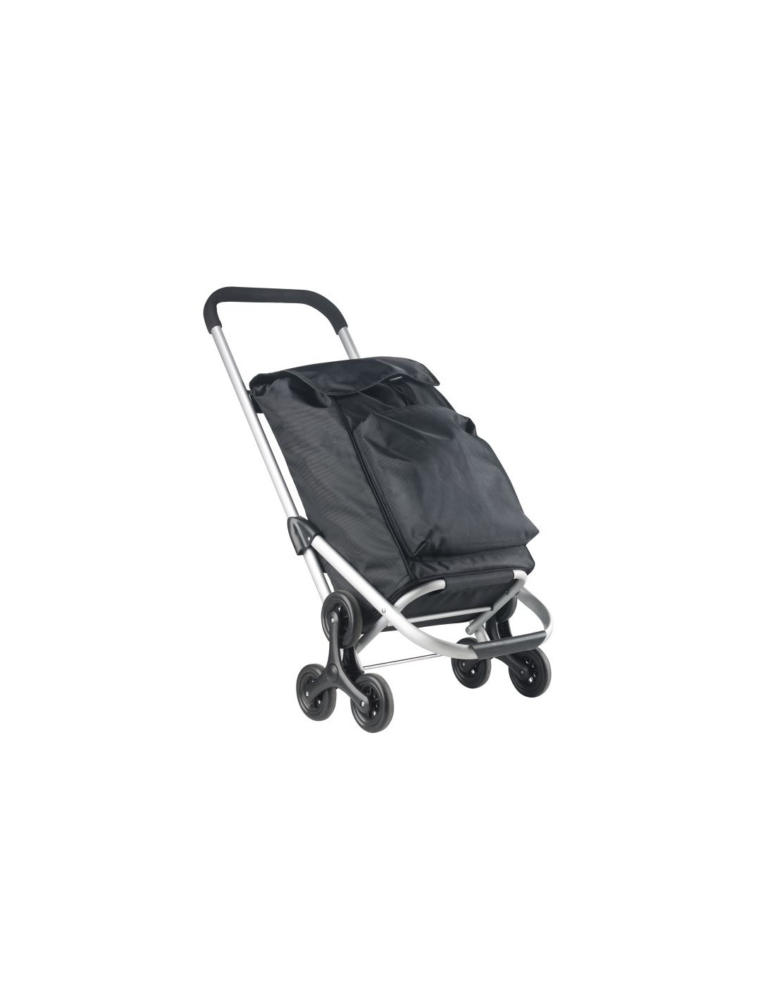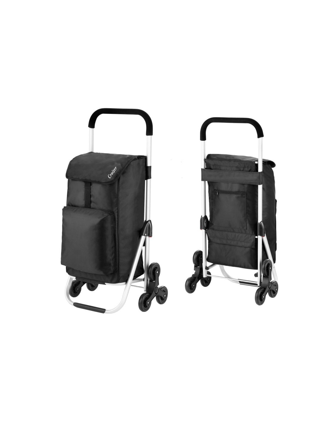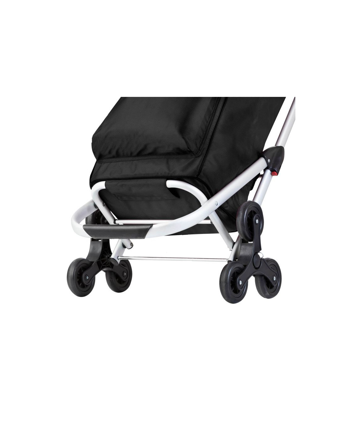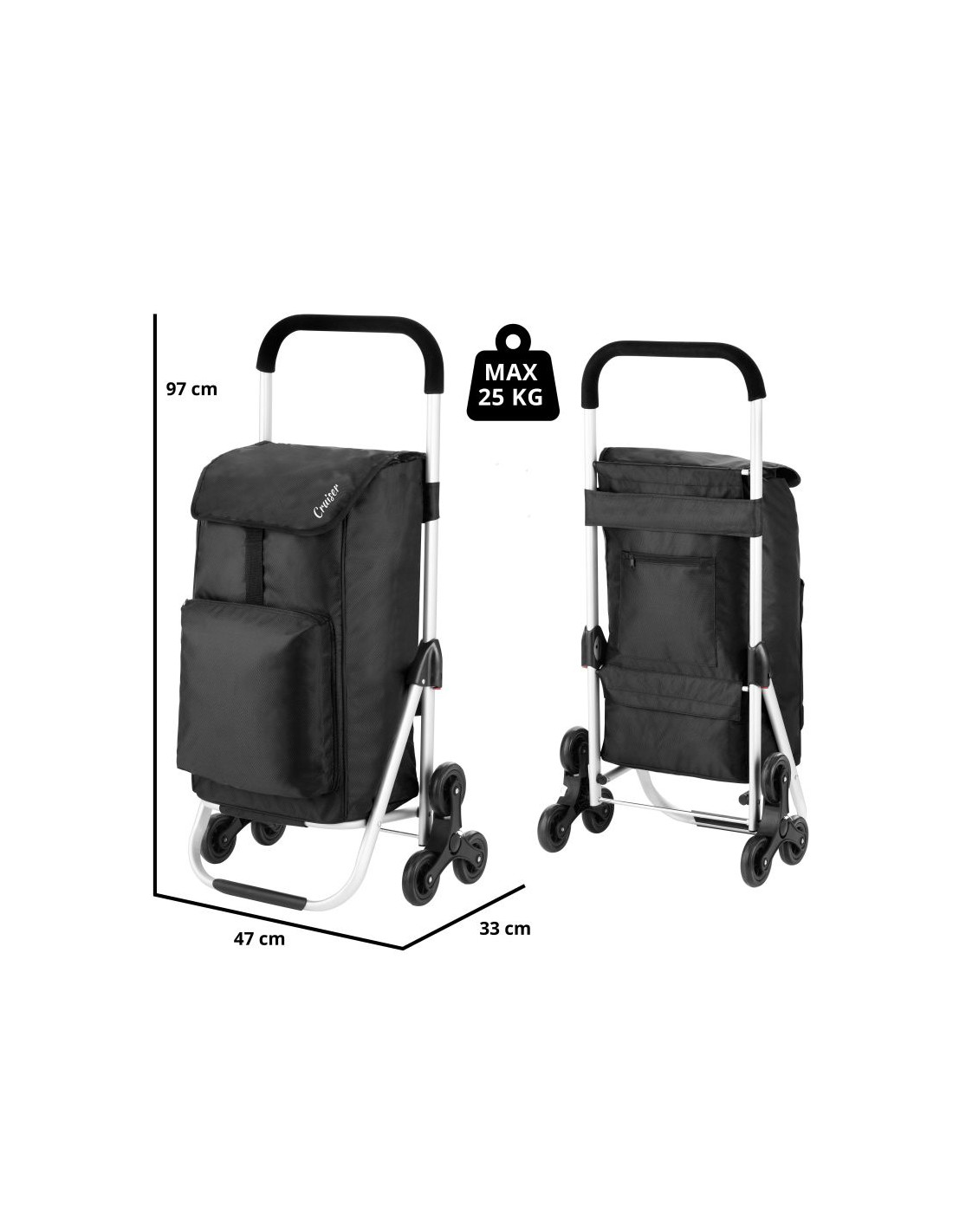 Praktyczny i pojemny wózek zakupowy z 6 kołami do łatwego poruszania się po schodach. Wózek posiada przestronną komorę główną o pojemności 30 litrów, ze sznurkiem i zamknięciem, przednią kieszeń termoizolacyjną (funkcja lodówki) i dodatkową kieszenią na suwak z tyłu. Usztywniane dno, wygodny uchwyt, górna klapa na klips, wodoodporny materiał wykonania to główne atuty wózka.