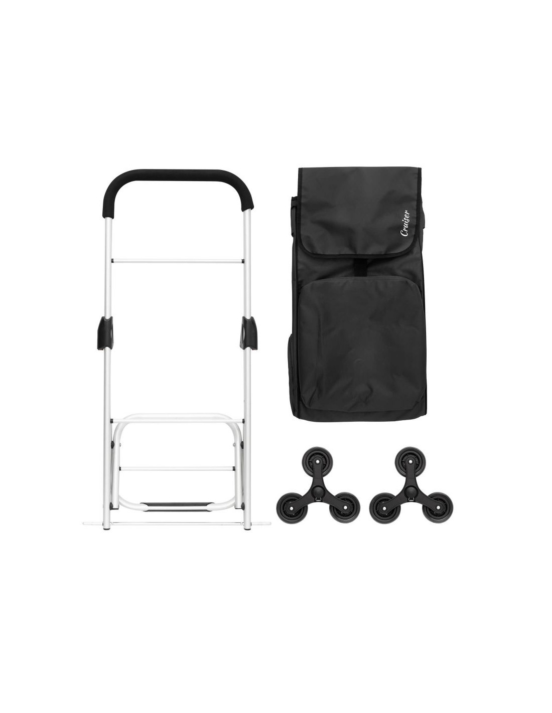 Główną zaletą wózka są trzy koła umieszczone po obu stronach osi, co gwarantuje komfortowe poruszanie się po schodach a także idealne rozłożenie masy i łatwe manewrowanie nawet z dużym obciążeniem.