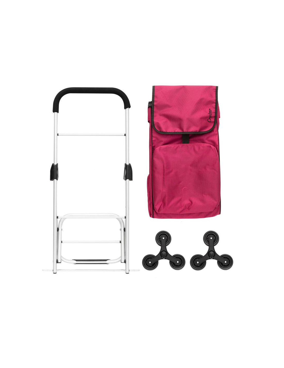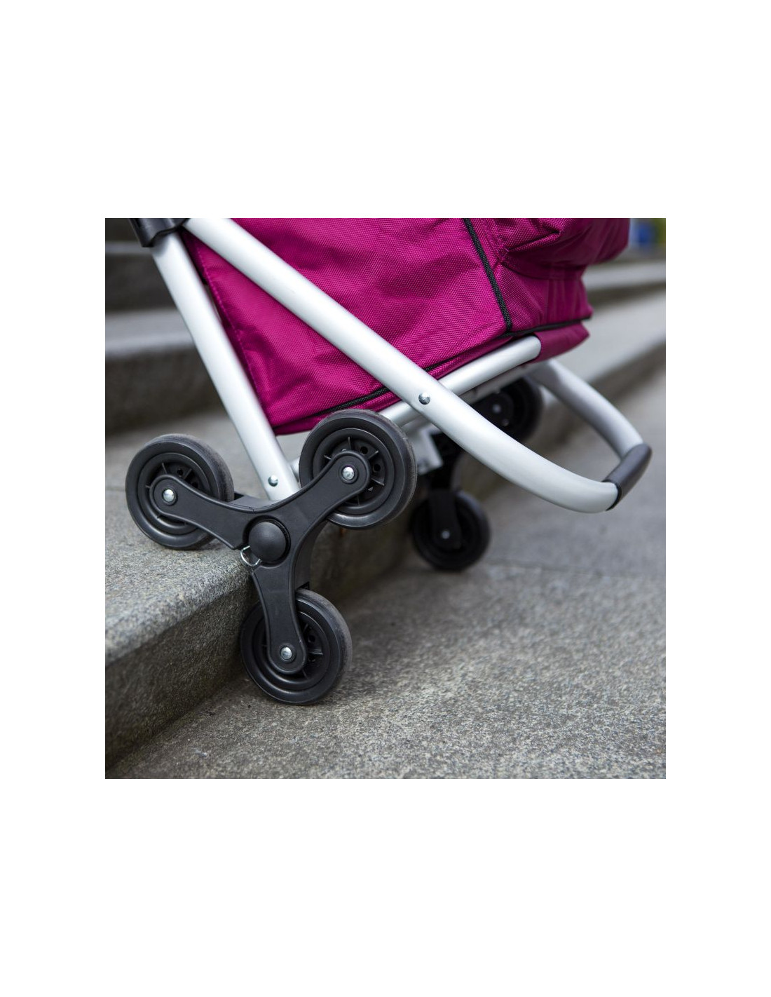 Główną zaletą wózka są trzy koła umieszczone po obu stronach osi, co gwarantuje komfortowe poruszanie się po schodach a także idealne rozłożenie masy i łatwe manewrowanie nawet z dużym obciążeniem.