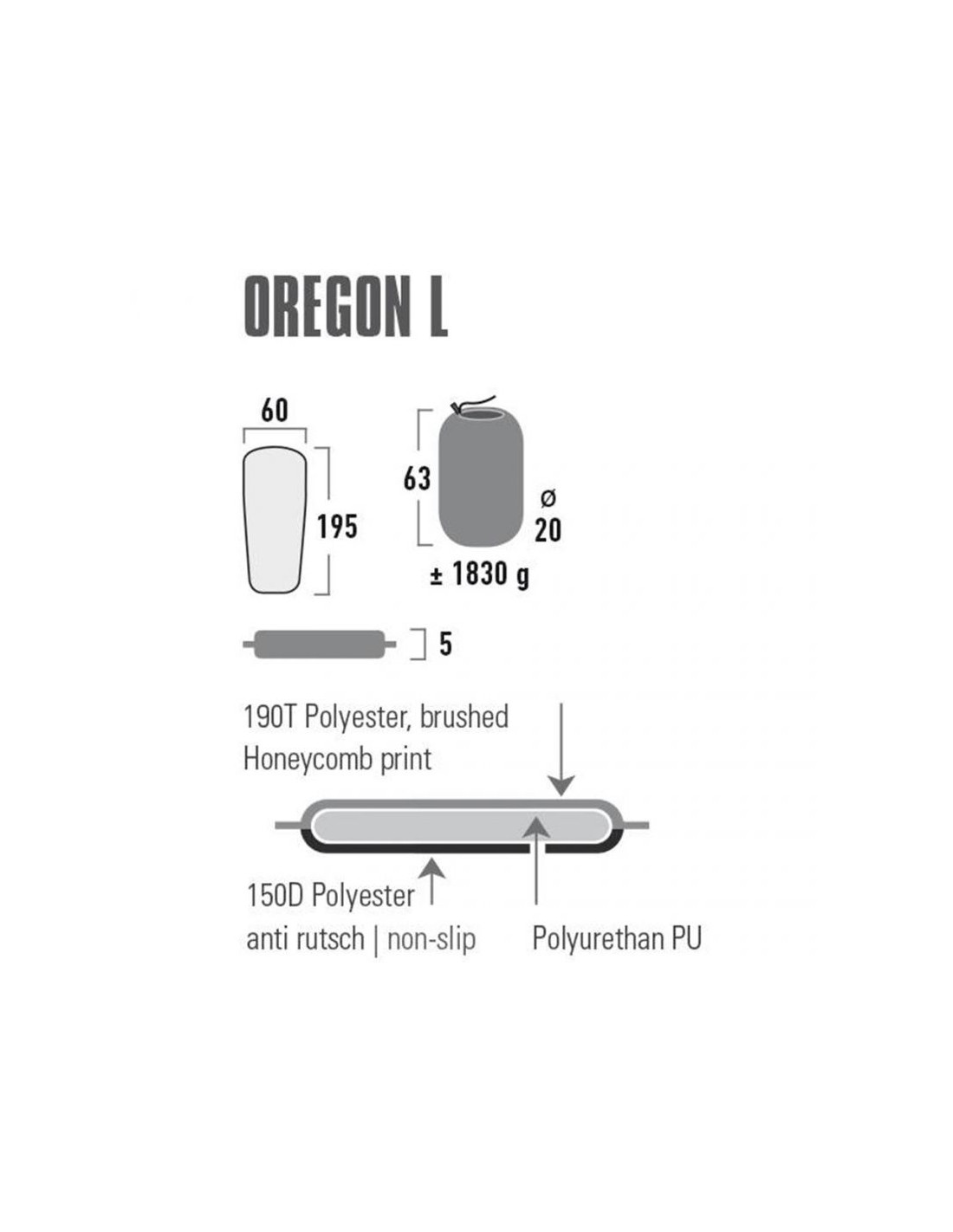 Samopompująca się mata termiczna z pianką o wysokiej gęstości zapewnia izolację i komfort. Powierzchnia „Wave Cut” idealnie przylega do ciała. Mata samopompująca wykonana jest z wysokiej jakości, antypoślizgowej szczotkowanej tkaniny poliestrowej. Spód wykonany jest z wytrzymałego poliestru antypoślizgowego. Samopompująca mata Oregon jest wyposażona w zawór zwrotny. Mata jest wyposażona w 2 paski kompresyjne i worek.