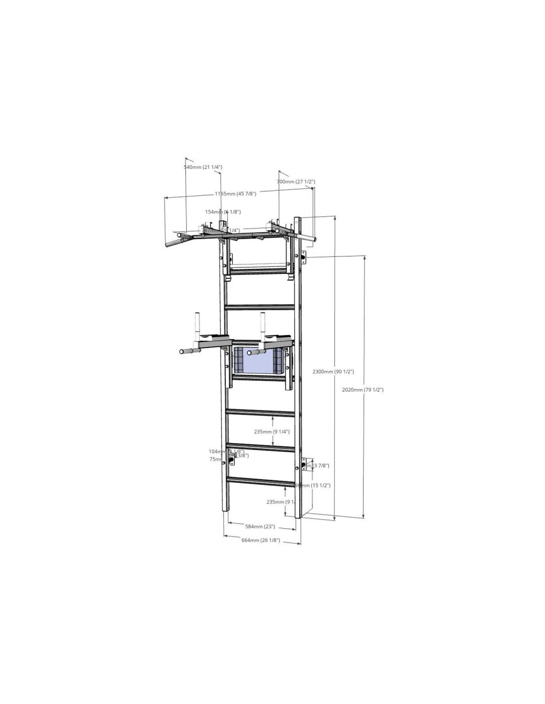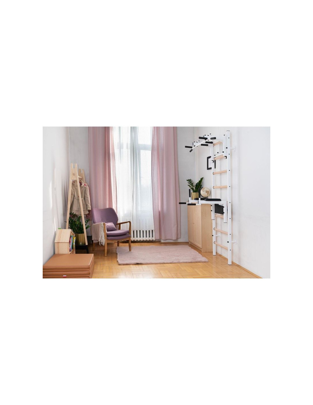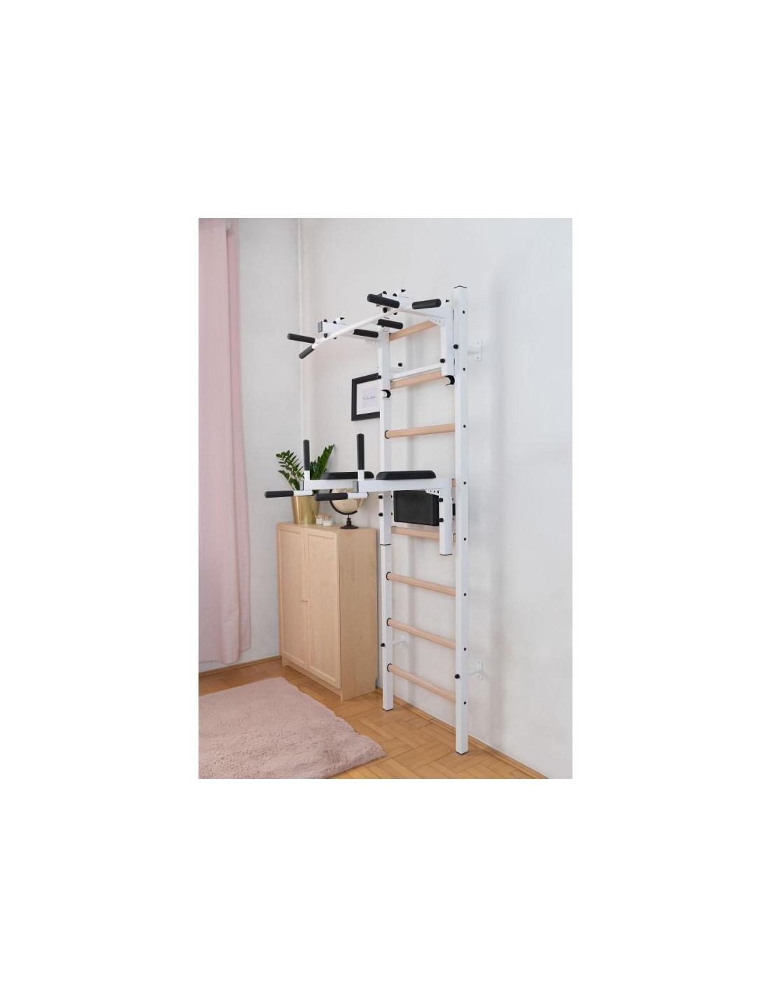 Drabinka gimnastyczna BenchK 232W to połączenie drabinki BenchK 210W z dodatkowym osprzętem w postaci: