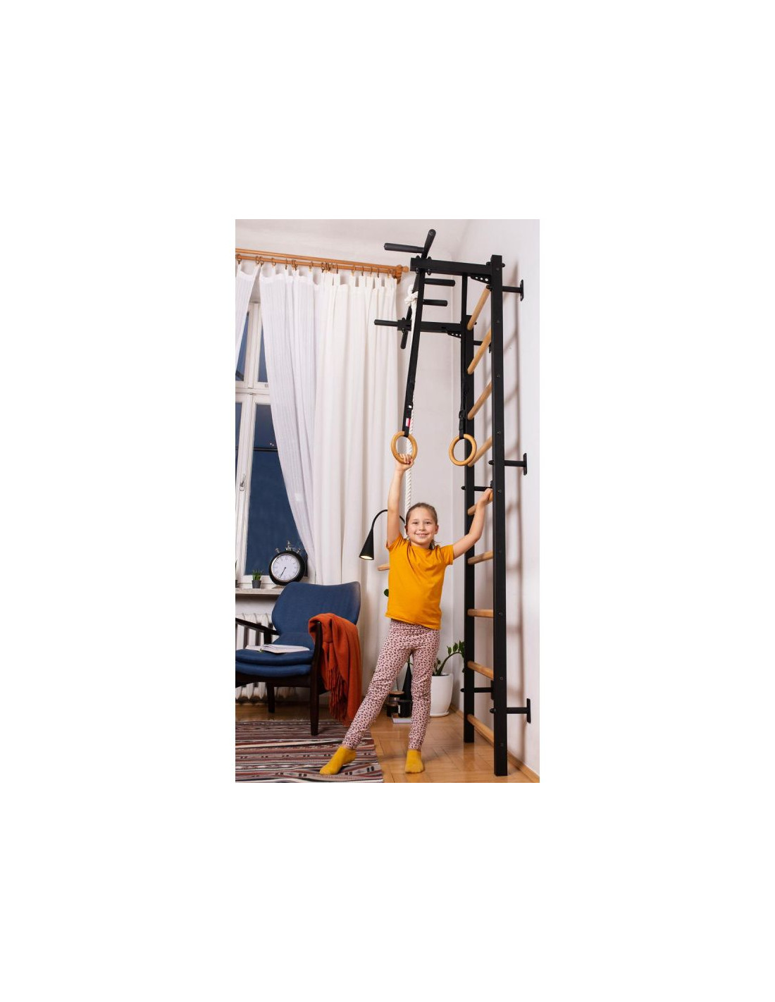 Maksymalna waga osoby ćwiczącej przy pomocy drabinki może wynosić aż 150 kg. Drabinka daje możliwość wykonywania rozmaitych ćwiczeń, zajmuje niewiele miejsca, a jej montaż jest szybki i łatwy. Design drabinki gimnastycznej wpasowuje się do aktualnych trendów w aranżacji wnętrz. Drabinka pomaga kształtować zachowania prozdrowotne wśród naszych pociech, bilansuje tym samym czas poświęcany na telewizję czy komputer z aktywnie spędzonym czasem.