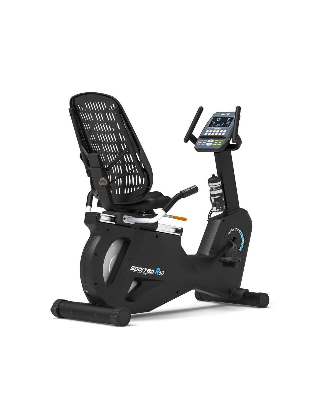 Rower magnetyczny poziomy Sportop R60 to sprzęt dla wymagających. Komfortowa pozycja siedząca, siatkowe oparcie, 12 programów, 16 poziomów oporu i wyświetlacz LCD sprawiają, że każdy trening w domu staje się skuteczny, wygodny i motywujący.