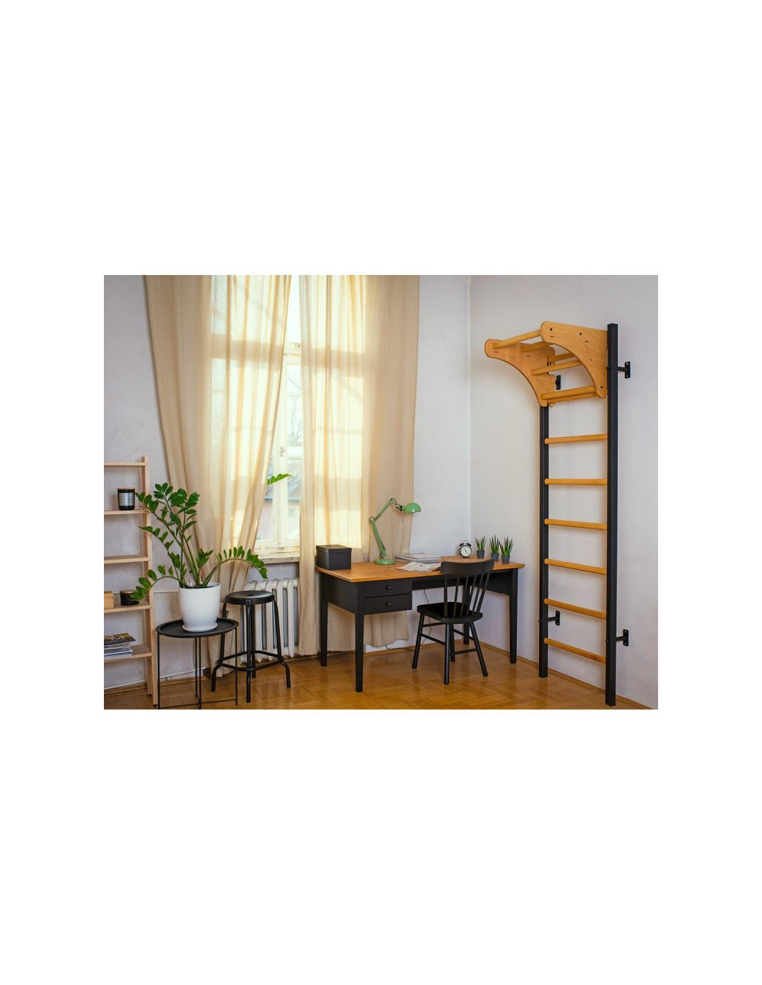 Wielofunkcyjna drabinka gimnastyczna to innowacyjne połączenie drewna i metalu. Świetnie sprawdzi się w każdym nowoczesnym wnętrzu, za sprawą starannie wyselekcjonowanego bukowego drewna wysokiej jakości oraz szlachetnej stali. Drabinka to gwarancja sprzętu wysokiej jakości oraz możliwości na większą aktywność ruchową.