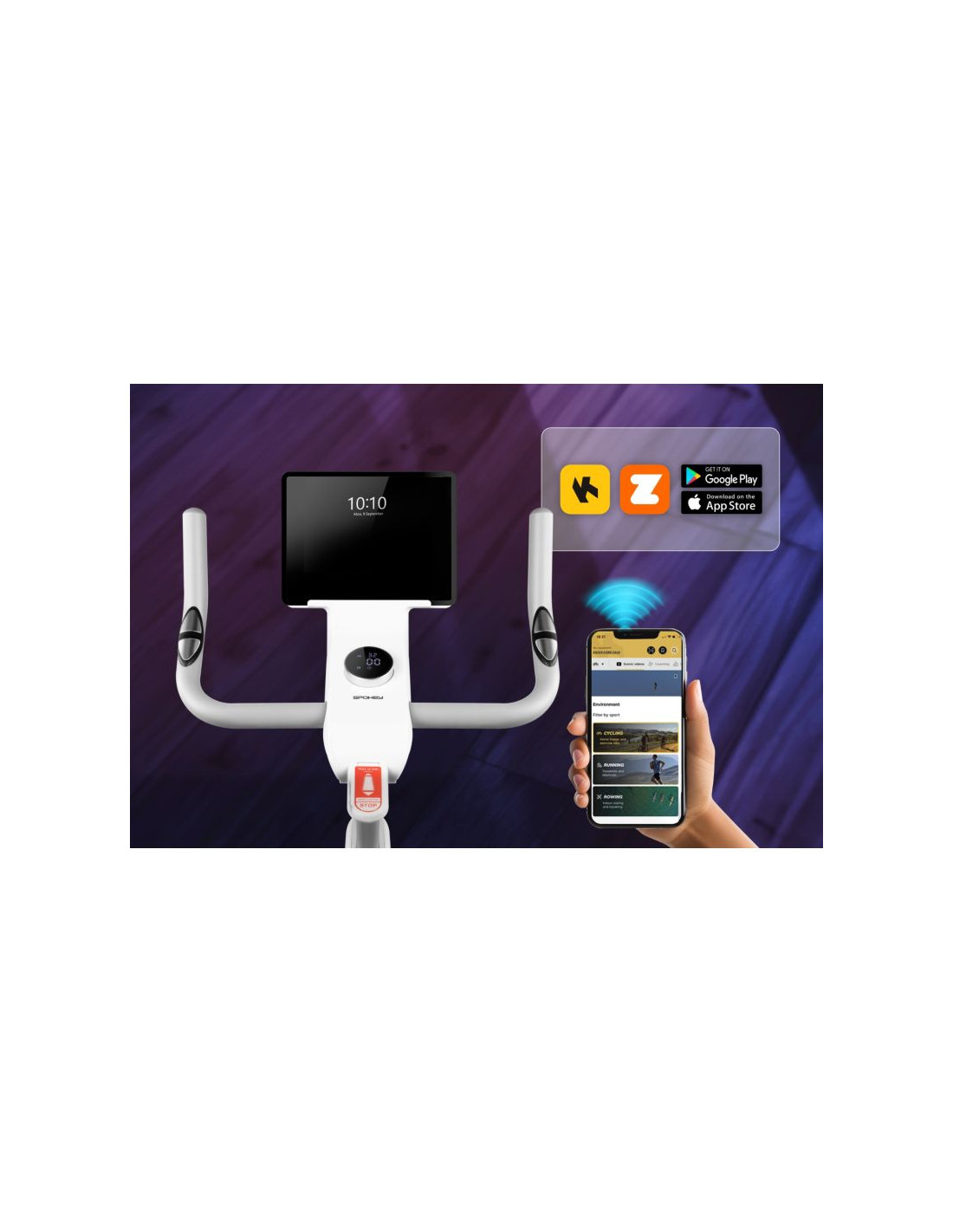 Elektromagnetyczny rowerek treningowy Spokey ZEN Nowoczesny rowerek elektromagnetyczny do użytku domowego z aż 32-stopniowym zakresem oporu, podświetleniem LED reagującym na tempo jazdy oraz połączeniem Bluetooth, które umożliwia trening z aplikacjami Kinomap i Zwift. Komfortowy, z możliwością precyzyjnego dopasowywany do użytkownika – idealny do codziennej aktywności. Wprowadzenie Szukasz rowerka treningowego, który łączy nowoczesny design z zaawansowaną funkcjonalnością? Spokey ZEN to elektromagnetyczny rower pionowy do użytku domowego, stworzony z myślą nawet o wymagających użytkownikach. Oferuje bardzo szeroki, 32-stopniowy zakres oporu, co pozwala dostosować intensywność treningu do każdego poziomu zaawansowania. Dzięki regulacji kierownicy i siodełka możesz dopasować go idealnie do swojego wzrostu. Funkcja Bluetooth, kompatybilność z aplikacjami Kinomap i Zwift oraz podświetlenie LED reagujące na tempo jazdy sprawiają, że rowerek Spokey ZEN zapewnia nie tylko efektywny, ale i motywujący trening w domowym zaciszu. Dlaczego warto wypróbować rowerek treningowy Spokey ZEN? Szeroki zakres oporu – aż 32 poziomyZaawansowany system elektromagnetyczny zapewnia płynną i cichą pracę oraz szeroki zakres regulacji. Dzięki temu możesz łatwo dopasować intensywność treningu do swoich celów i poziomu zaawansowania – od delikatnego cardio po wymagające interwały. Podświetlenie LED zmieniające koloryRowerek Spokey ZEN wyposażony jest w designerskie, futurystyczne oświetlenie LED – kolory zmieniają się stopniowo od niebieskiego, zielonego, fioletowego i czerwonego, w zależności od prędkości. To nie tylko efektowny akcent, ale też motywujący element treningu. Regulacja kierownicy i siodełkaDzięki pionowej regulacji kierownicy (8 poziomów) oraz możliwości ustawienia siodełka w pionie i poziomie, rowerek dopasowuje się do wzrostu i preferencji użytkownika. Ergonomia to jeden z czynników komfortowego i efektywnego treningu. Pomiar pulsu i wbudowane sensoryCzujniki umieszczone na kierownicy pozwalają na stałą kontrolę tętna. To rozwiązanie idealne dla osób, które trenują w strefach tętna lub chcą monitorować intensywność wysiłku. Aplikacje treningowe i BluetoothRowerek ZEN łączy się z aplikacjami Kinomap i Zwift, co pozwala trenować w realistycznych warunkach, śledzić postępy i zwiększać motywację podczas każdej sesji. Wszystko to za pośrednictwem wygodnego połączenia Bluetooth. Mobilność i wygoda przechowywaniaKółka transportowe ułatwiają przestawianie rowerka po zakończonym treningu. Szczegółowy opis ZEN to rowerek wyposażony w nowoczesny napęd elektromagnetyczny, pozwala na precyzyjne sterowanie oporem aż na 32 poziomach. Dzięki temu bez problemu przejdziesz od lekkiego treningu cardio do intensywnych sesji interwałowych. Podświetlenie LED zmieniające kolory w zależności od intensywności jazdy sprawia, że każdy trening nabiera dynamicznego i wizualnie atrakcyjnego charakteru. Dopasuj ustawienie kierownicy oraz siodełka w dwóch płaszczyznach, aby zapewnić sobie pełen komfort jazdy i ergonomię użytkowania, niezależnie od wzrostu czy preferencji użytkownika. Dzięki wbudowanemu modułowi Bluetooth rowerek jest kompatybilny z aplikacjami Kinomap i Zwift, co pozwala wzbogacić trening o wirtualne trasy, rywalizację lub programy dostosowane do Twoich celów. Dane techniczne Typ: rowerek pionowy elektromagnetyczny Rodzaj oporu: elektromagnetyczny (napęd silnikowy) Zakres oporu: 32-stopniowy Koło zamachowe: 6 kg, dwukierunkowe Funkcje wyświetlacza: czas, prędkość, dystans, kalorie, puls, RPM, opór, tryb SCAN Bluetooth: tak Kompatybilność z aplikacjami: Kinomap, Zwift Podświetlenie LED: zmienia kolory w zależności od prędkości Regulacja kierownicy: pionowa, 8 poziomów Regulacja siodełka: pionowa i pozioma Wymiary: 101 × 51 × 165 cm Waga urządzenia: 28 kg Maksymalna waga użytkownika: 120 kg Zasilanie: elektryczne Kółka transportowe: tak Certyfikaty, normy i ostrzeżenia Zgodność z normami bezpieczeństwa UE. Produkt przeznaczony wyłącznie do użytku domowego. Urządzenie nie jest przeznaczone dla dzieci. Użytkowanie i pielęgnacja Przed pierwszym użyciem zapoznaj się z instrukcją obsługi. Trenuj w odpowiednim obuwiu sportowym. Czyść urządzenie wilgotną ściereczką po każdym treningu. Unikaj kontaktu z wodą i przechowuj sprzęt w suchym miejscu. Regularnie sprawdzaj dokręcenie śrub i stabilność elementów. Nie używaj środków czyszczących zawierających alkohol lub aceton. Odłącz zasilanie, gdy nie używasz sprzętu przez dłuższy czas. Najczęściej zadawane pytaniaJakie są zalety elektromagnetycznego systemu oporu?Elektromagnetyczny system oporu zapewnia wyjątkowo płynną, cichą i precyzyjną pracę urządzenia. Dzięki 32 poziomom oporu, możesz idealnie dopasować intensywność treningu do swojego poziomu zaawansowania – od lekkiego rozruchu po intensywny wysiłek. W przeciwieństwie do standardowych rowerków magnetycznych, ZEN oferuje szerszy zakres regulacji i szybszą reakcję na zmiany ustawie