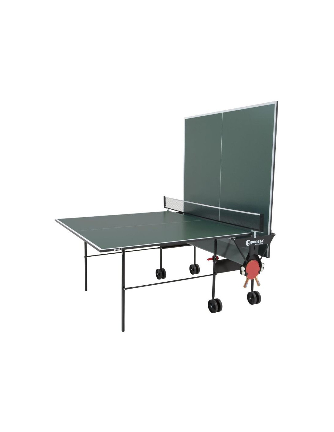 Rozgrywaj towarzyskie mecze ping-ponga na solidnym stole SPONETA S1-12i. Baw się doskonale i ćwicz podstawy gry! Sprzęt jest idealny do gry rekreacyjnej wewnątrz pomieszczeń, dla dwóch lub jednej osoby. Dzięki funkcji złożenia stołu do treningu jednoosobowego, możesz sam ćwiczyć szybkość niezbędną w klasycznej grze. Stół to idealny wybór dla osób początkujących, idealny do nauki podstaw gry i wyłącznie do użytku domowego, do pomieszczeń zamkniętych, nieodporny na ciepło i zimno oraz promienie słoneczne.