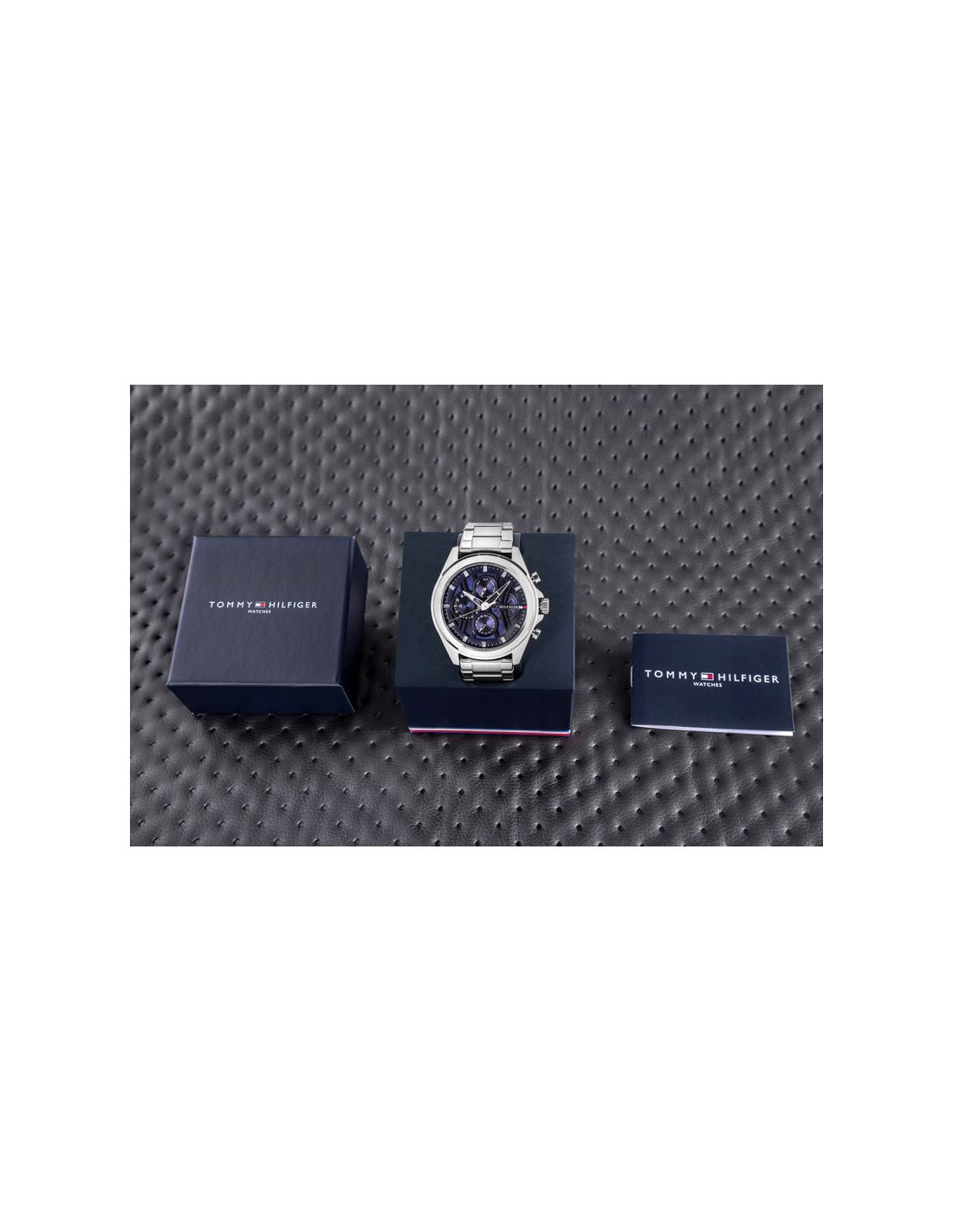 Z zegarkiem otrzymasz stylowe, firmowe pudełko w kolorystyce marki Tommy Hilfiger. To eleganckie opakowanie stanowi idealne uzupełnienie, które sprawia, że zegarek staje się gotowym, luksusowym prezentem. To subtelny akcent, który podkreśla wyjątkowy charakter i klasę marki Tommy Hilfiger.