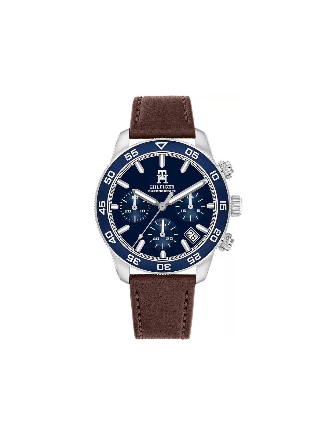 Tommy Hilfiger TH85 Chronograph 1792163 to zegarek, który łączy elegancję z funkcjonalnością, idealny dla nowoczesnego mężczyzny. Granatowa tarcza z subtelnymi złotymi detalami nadaje mu klasyczny, a zarazem dynamiczny charakter. Wyposażony w datownik oraz funkcję chronografu, zegarek łączy estetykę z praktycznością, spełniając codzienne potrzeby. Srebrna koperta ze stali szlachetnej w połączeniu z granatowym bezelem tworzy spójną całość, a mineralne szkło chroni tarczę przed zarysowaniami. Brązowy skórzany pasek nie tylko zapewnia wygodę, ale także dodaje zegarkowi eleganckiego wykończenia. Z kolei zakręcany dekiel zapewnia dodatkową ochronę, a wodoszczelność do 50 m sprawia, że model jest odporny na codzienne zachlapania. To doskonały wybór dla mężczyzn ceniących klasyczny styl połączony z nowoczesnymi funkcjami.