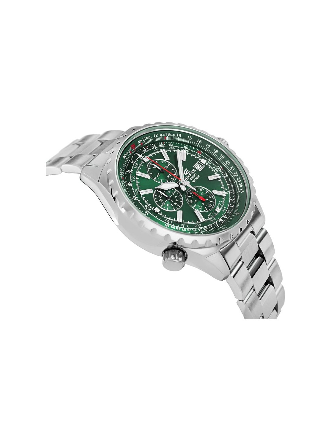 Model dla mężczyzn ceniących precyzję, funkcjonalność i techniczny design. Co znajdziesz w środku? Wewnątrz zegarka kryje się stoper 1/20 sekundy oraz obrotowa suwakowa skala logarytmiczna, umożliwiająca precyzyjne pomiary i obliczenia czasu, prędkości, zużycia paliwa i wielu innych parametrów. Solidna bransoleta ze stali nierdzewnej zapewnia jeszcze lepsze dopasowanie do nadgarstka dzięki mniejszym, zaokrąglonym segmentom, a karbowany bezel, precyzyjne znaczniki godzin na tarczy oraz szkło mineralne nadają zegarkowi zaawansowany technicznie design.