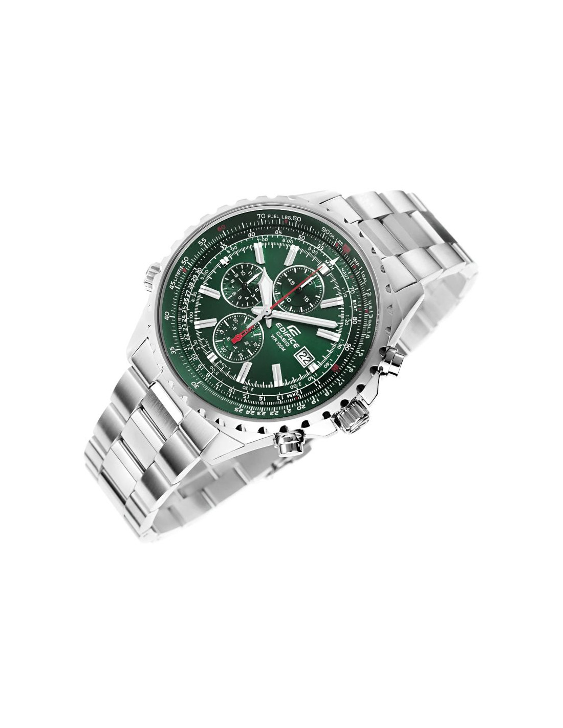 - TARCZA: Analogowa z chronografami, suwakiem logarytmicznym, wskaźnikiem daty dni miesiąca