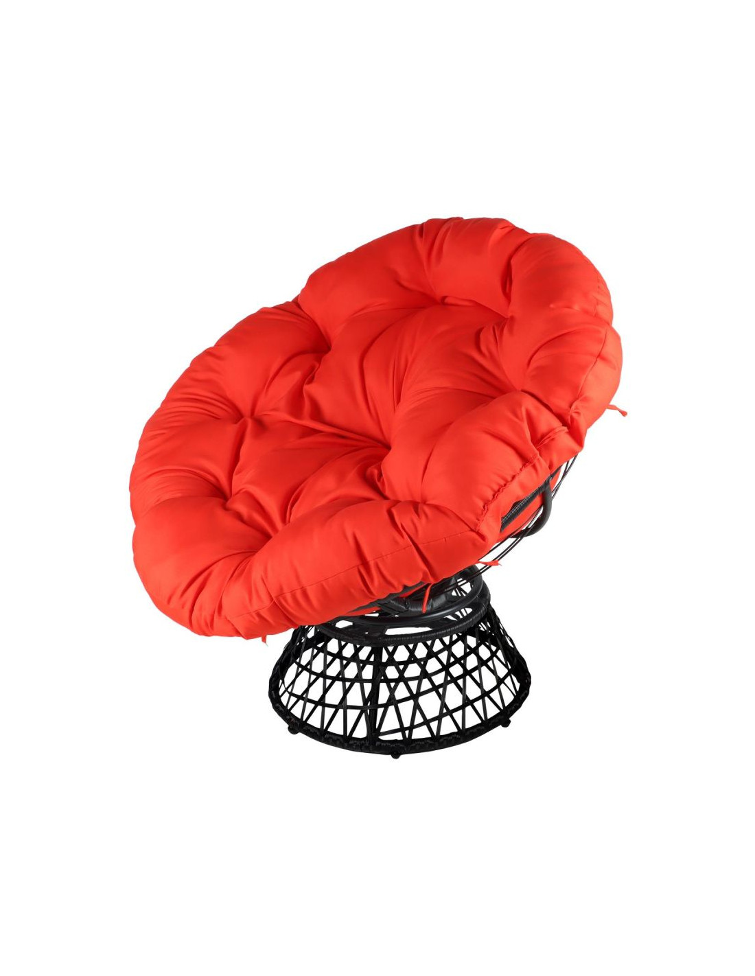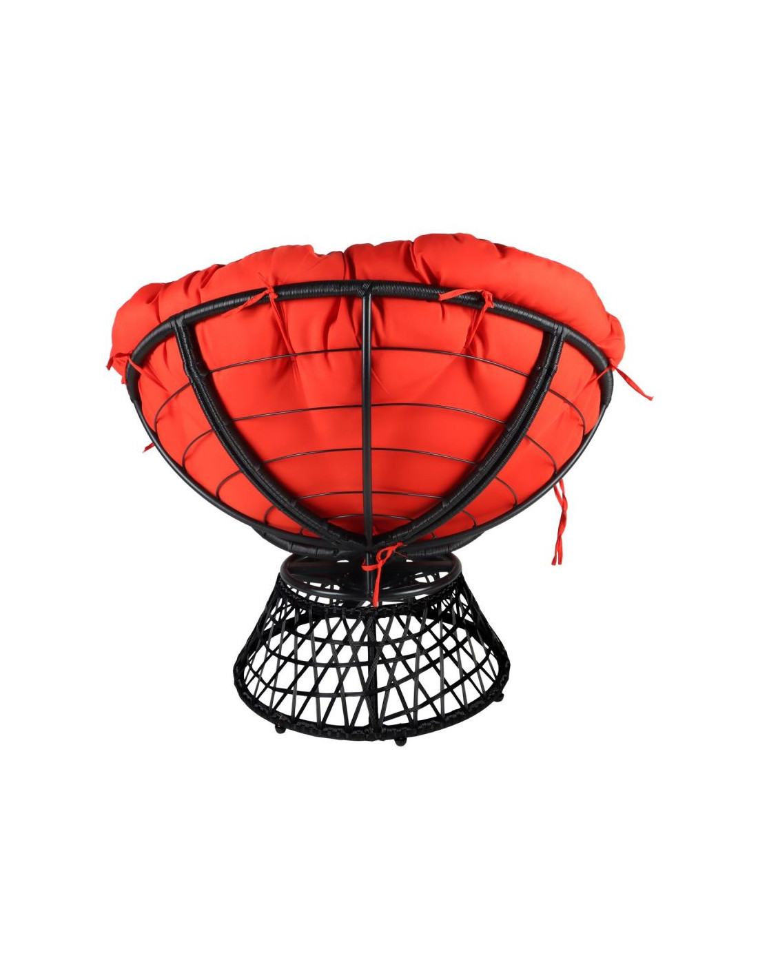 FOTEL OGRODOWY OBROTOWY 360 STOPNI Z PODUSZKĄ CZERWONĄ to wygodne i praktyczne rozwiązanie do relaksu na świeżym powietrzu lub wewnątrz pomieszczeń, które łączy w swojej formie nowoczesny styl i wygodę.