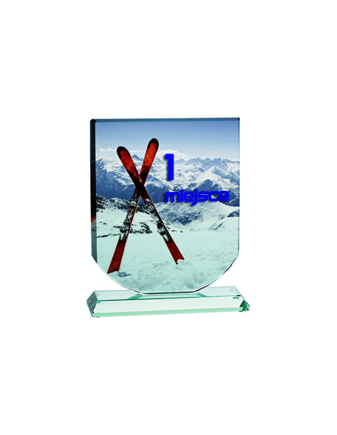 Trofeum szklane z nadrukiem kolorowym LuxorJet, grawerowaniem oraz wypełnieniem farbą i etui