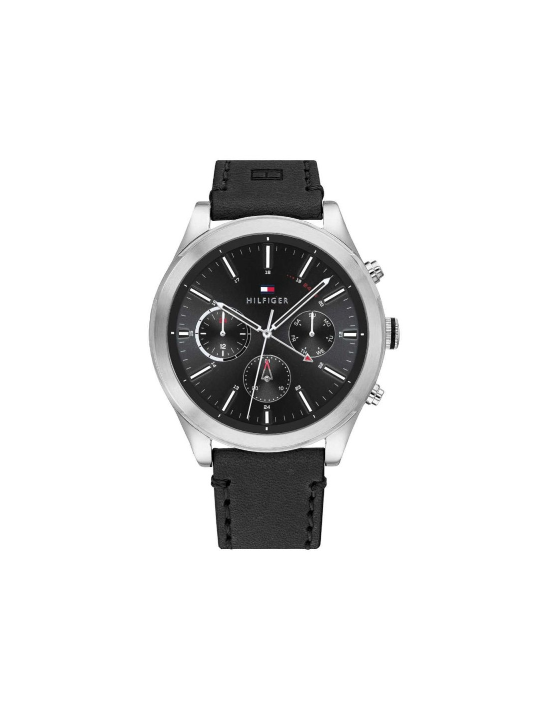Tommy Hilfiger Ashton na czarnym skórzanym pasku to zegarek stworzony dla mężczyzny, który chce nie tylko kontrolować czas, ale i robić to z prawdziwą klasą. Wyposażony w funkcjonalności takie jak datownik, 24-godzinny format czasu i czytelne indeksy, Ashton łączy wyrafinowany design z praktycznością. Połączenie elegancji z wyraźnym akcentem męskości tworzy czasomierz, który jest jak dobry garnitur — niezawodny, mocny i zawsze na miejscu.