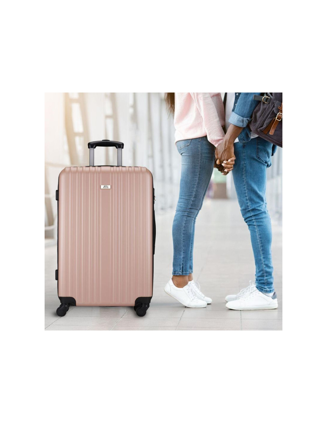Zestaw 2 walizek Slazenger Rose Gold (35L i 97L) to stylowy, wytrzymały i funkcjonalny zestaw! Plastikowa obudowa, kółka 360°, zamek 3-cyfrowy i uchwyt bocznysprawiają,że to idealne rozwiązenie na każdą podróż!