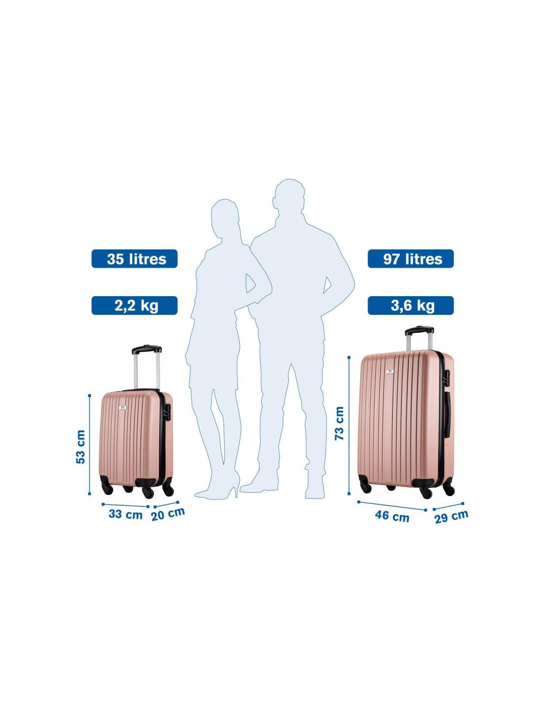 W skład zestawu wchodzą 2 walizki, kabinowa 18 cali oraz walizka duża 26 cali na bagaż rejestrowany, dzięki temu możesz w nie spakować dowolną ilość rzeczy, w zależności od długości i rodzaju podróży.