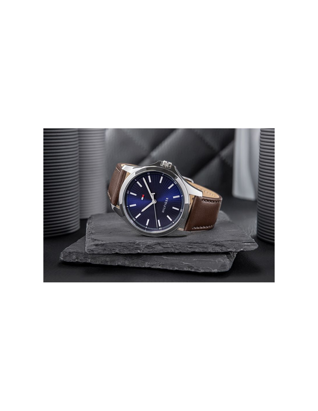 Tommy Hilfiger w tej odsłonie to zegarek, który emanuje nowoczesnym charakterem i męską pewnością siebie. Wzbogacony o dostojny wzór tarczy oraz granatowy akcent kolorystyczny, który nadaje designowi nieoczywistego, dynamicznego twistu. To nie tylko precyzyjny czasomierz, ale też odważne wyrażenie stylu dla mężczyzny, który wie, jak wyróżnić się z tłumu.