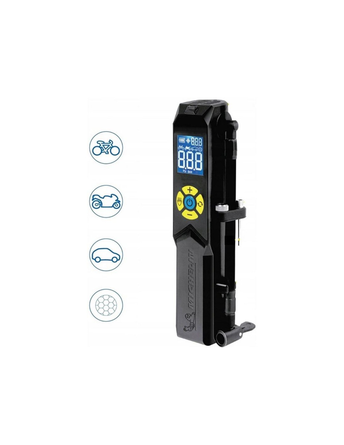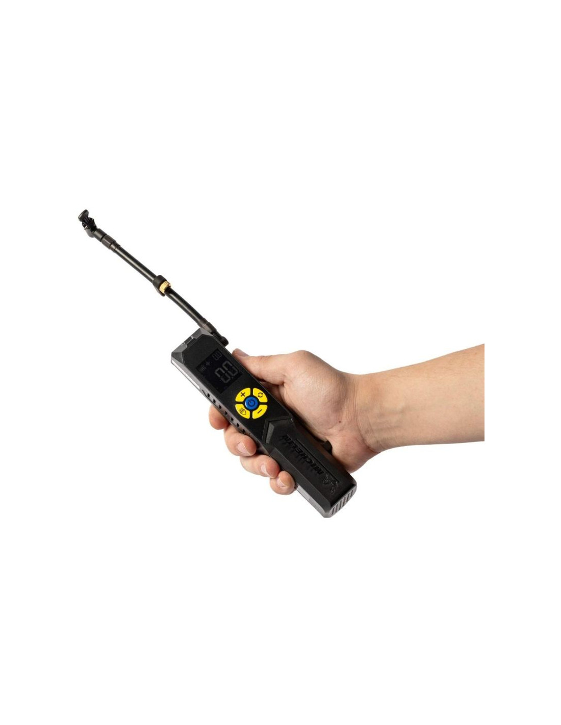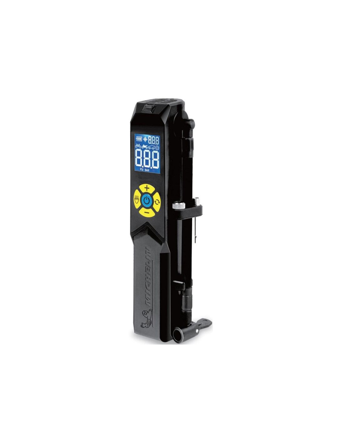 Dzięki jasnemu, cyfrowemu wskaźnikowi pompka pozwala na precyzyjne ustawienie wartości ciśnienia przed przystąpieniem do pompowania koła, zgodnie z zaleceniami instrukcji pojazdu, według trzech różnych systemów miar (PSI, kPa, BAR), co podnosi bezpieczeństwo oraz zapewnia dokładność.