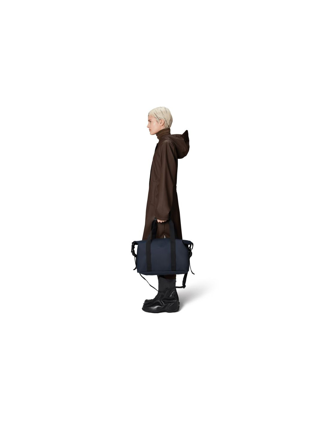 Hilo Weekend Bag Small jest wykonana z charakterystycznej dla Rains wodoodpornej tkaniny PU, zaprojektowanej z myślą o wytrzymałości, trwałości i gładkości w dotyku.