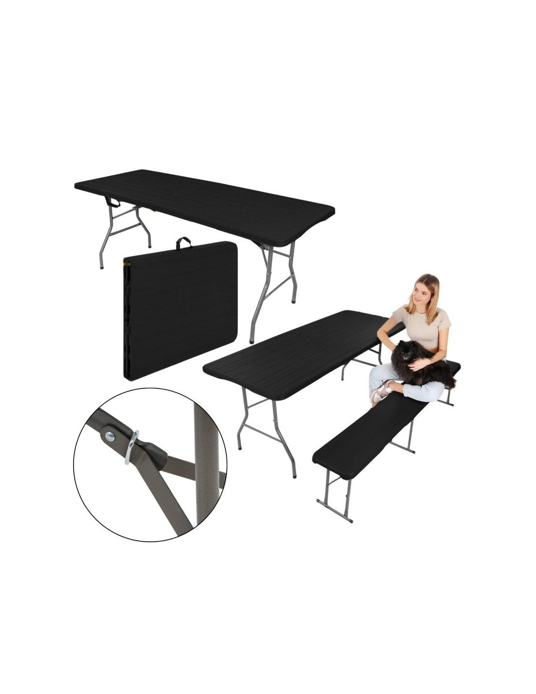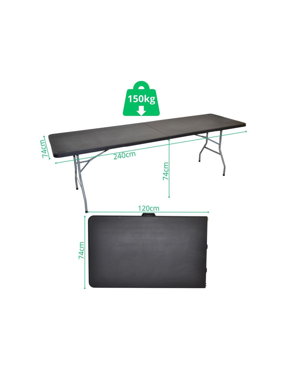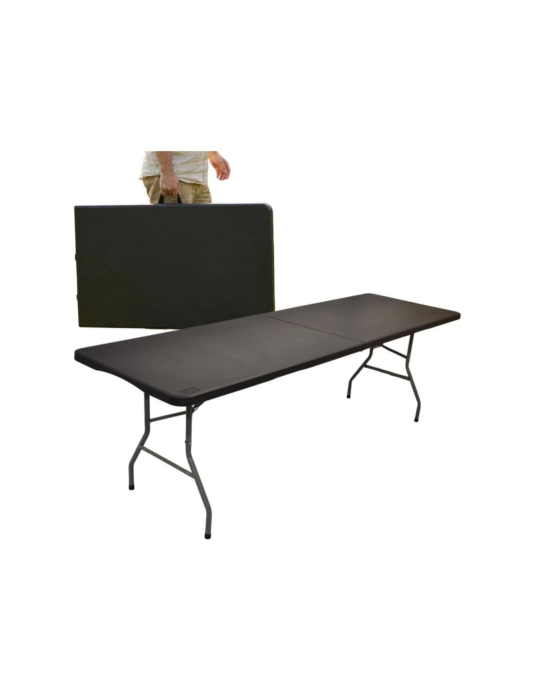 STÓŁ CATERINGOWY SKŁADANY W WALIZKĘ 240x74x74CM 150KG CZARNY to solidny stół o długości 240 cm, który wytrzyma aż 150 kg obciążenia, a po złożeniu zmieści się w formie walizki do bagażnika – idealny na każdą okazję./p>