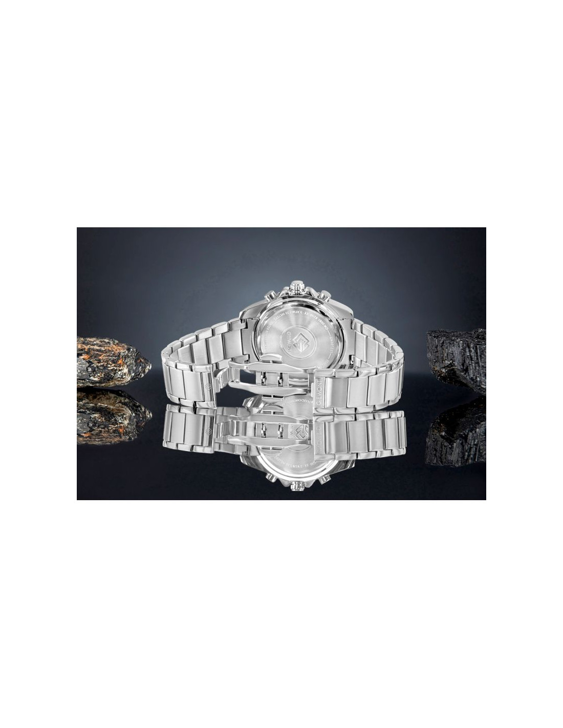 Stalowa bransoleta została wykonana z dbałością o idealne dopasowanie, dzięki czemu zegarek prezentuje się solidnie i profesjonalnie, a przy tym zapewnia wysoki komfort noszenia. Jej konstrukcja tworzy spójną całość z masywną kopertą, podkreślając męski i zdecydowany charakter modelu. Obrotowy bezel dodaje zegarkowi funkcjonalności inspirowanej profesjonalnymi czasomierzami sportowymi i wzmacnia jego nowoczesną prezencję.