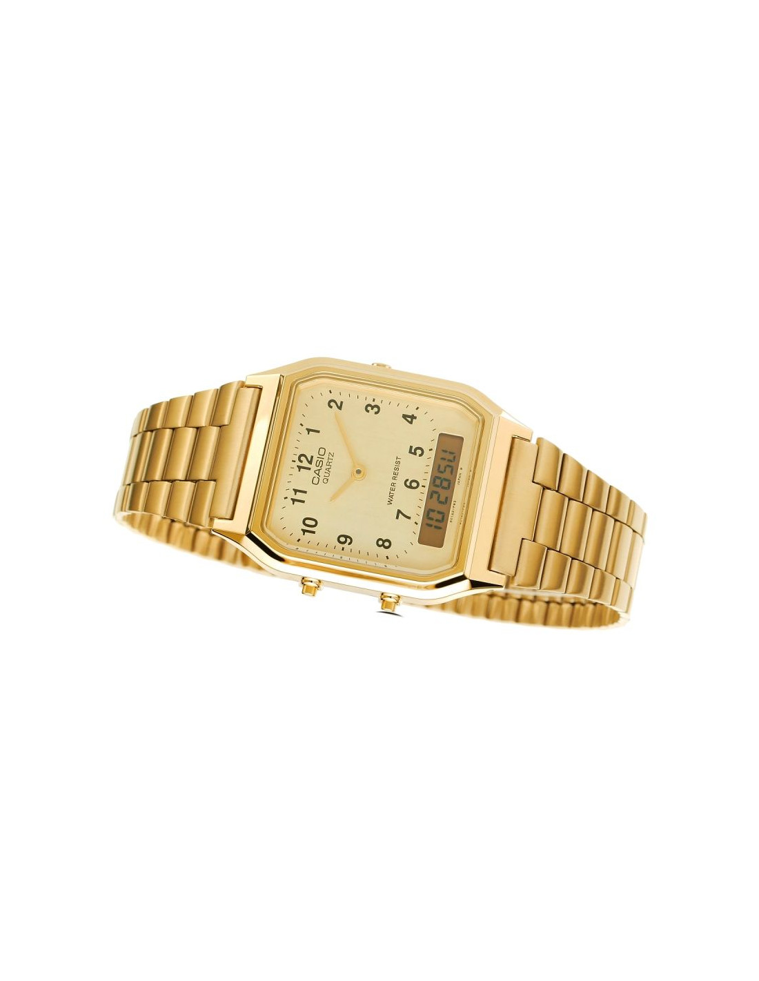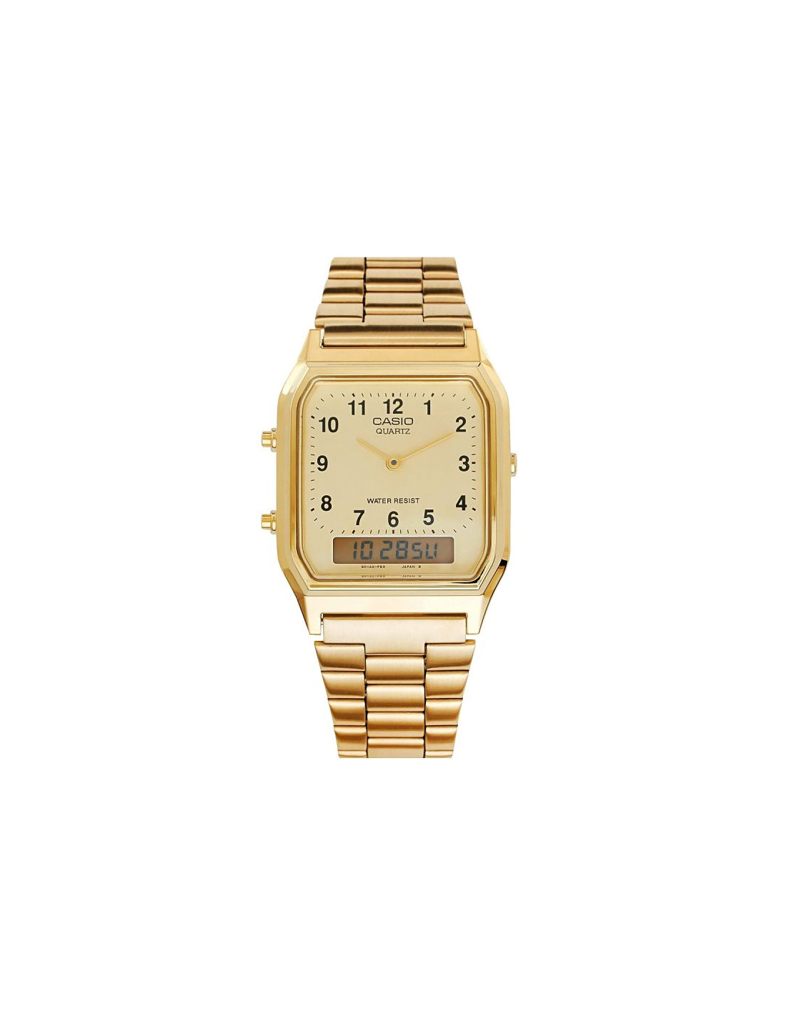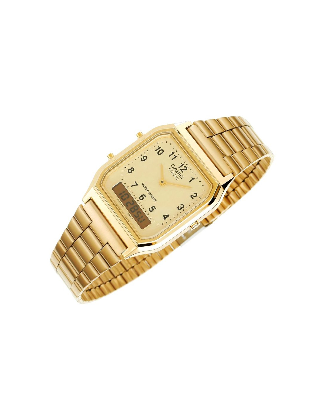 Casio AQ-230 to zegarek, który łączy prestiż, funkcjonalność i ponadczasową estetykę. Idealny wybór dla tych, którzy cenią styl vintage, ale nie chcą rezygnować z nowoczesnych rozwiązań. Casio AQ-230 to nie tylko piękny design, ale również doskonała precyzja działania. Podwójny wyświetlacz analogowo-cyfrowy pozwala na kontrolowanie czasu w dwóch strefach jednocześnie, a dodatkowe funkcje, takie jak alarm, stoper i kalendarz automatyczny, zwiększają jego praktyczność.