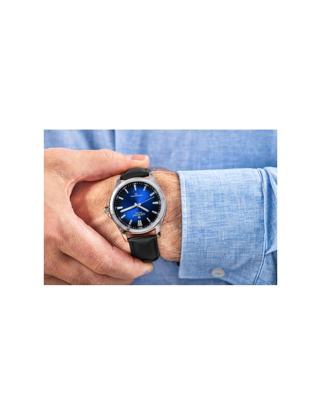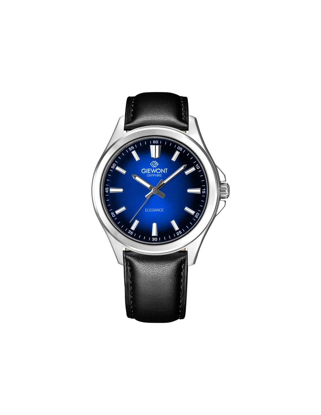 GIEWONT Elegance Sapphire to zegarek stworzony dla mężczyzn, którzy cenią sobie nienaganny styl, dobrą jakość wykonania i detale świadczące o dobrym guście. Jego głęboka, granatowa tarcza o subtelnym, promienistym gradiencie natychmiast przyciąga wzrok i nadaje całości wyjątkowego, prestiżowego charakteru, a odporne na zarysowania szafirowe szkło gwarantuje, że czasomierz zachowa swój nienaganny wygląd przez wiele lat intensywnego użytkowania. Precyzyjne, metaliczne indeksy i smukłe wskazówki zapewniają doskonałą czytelność nawet w trudnych warunkach oświetleniowych, podkreślając jednocześnie elegancki charakter zegarka. Solidna koperta w srebrnym połysku harmonijnie współgra z miękkim, klasycznym skórzanym paskiem, który idealnie dopasowuje się do nadgarstka i sprawia, że noszenie zegarka jest czystą przyjemnością. To uniwersalny, ponadczasowy model, który doskonale sprawdzi się zarówno podczas spotkań biznesowych, formalnych uroczystości, jak i w codziennych stylizacjach, dodając pewności siebie oraz wyrafinowania. GIEWONT Elegance Sapphire to nie tylko stylowy dodatek – to symbol elegancji, dbałości o detale i świadomy wybór mężczyzny, który wie, czego oczekuje od swojego czasu i od swojego stylu.