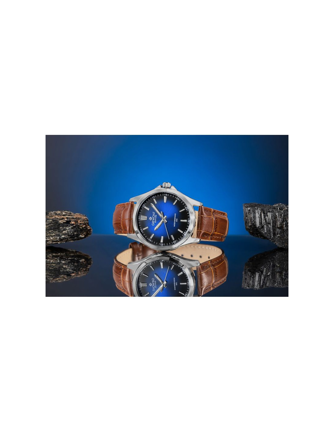 Zegarek męski Giewont ELEGANCE to doskonałe ucieleśnienie klasy, kunsztu i świadomego stylu, stworzony z myślą o mężczyźnie, który od dodatków oczekuje harmonii między ponadczasową estetyką a najwyższą prezencją. Jego głęboka, granatowa tarcza o intensywnym kolorze i połysku przyciąga spojrzenia i nadaje czasomierzowi wyjątkowy, szlachetny charakter, aszkiełko szafirowe zapewnia nie tylko spektakularną przejrzystość, ale także imponującą odporność na zarysowania, dzięki czemu zegarek przez lata zachowuje swój prestiżowy wygląd.