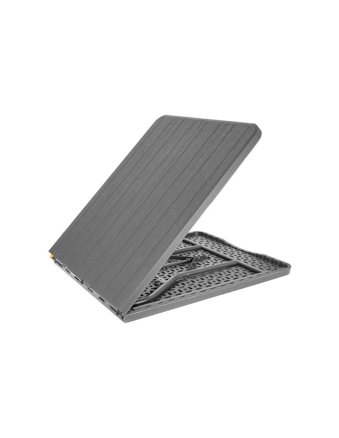 Dzięki składanym nóżkom zajmuje minimalną ilość miejsca i jest gotowy zawsze, kiedy go potrzebujesz. Niewielkich wymiarów walizka, w jaką zamienia się po złożeniu stół, zmieści się do każdego auta, a specjalna blokada zabezpieczy ją przed niechcianym otwarciem.