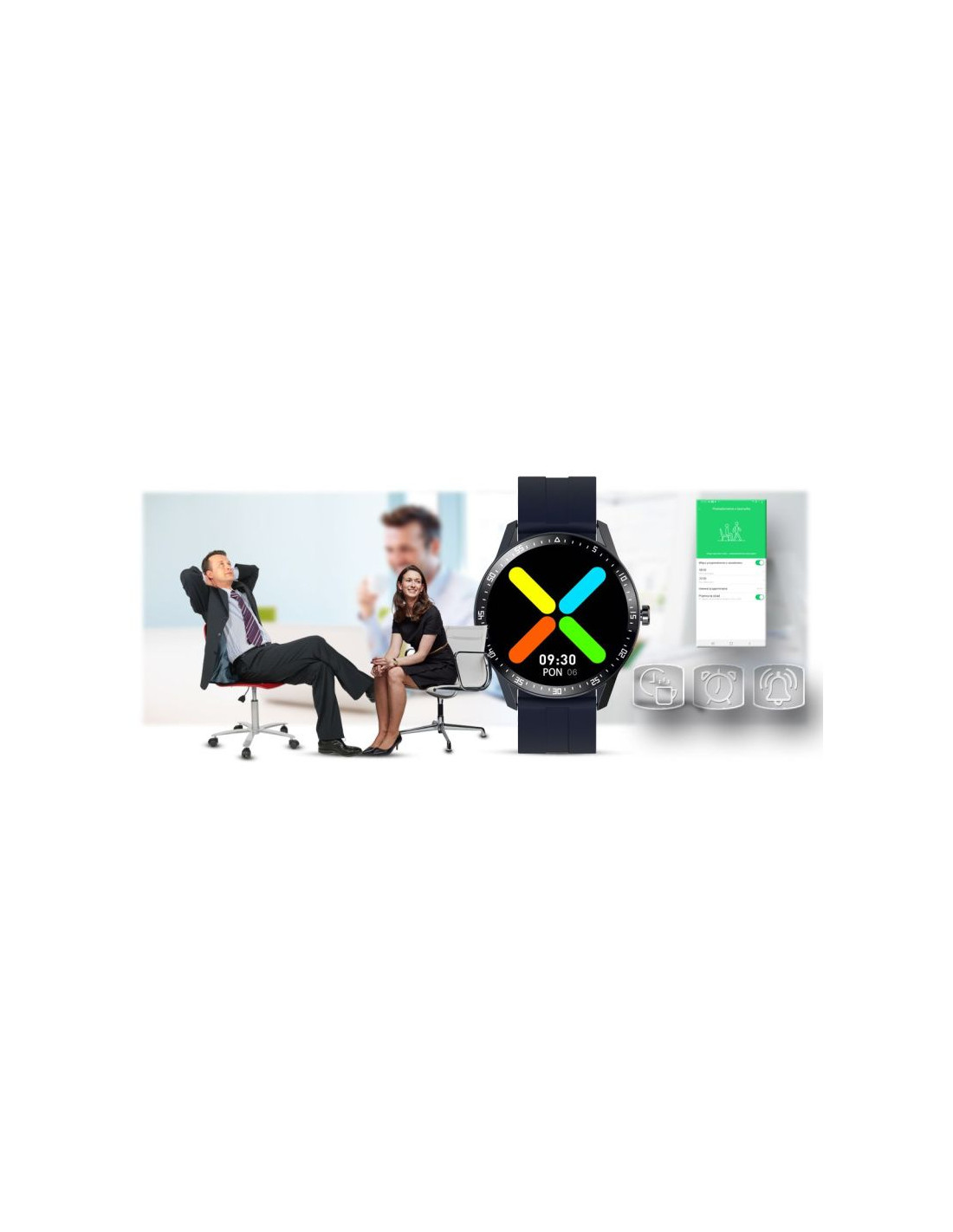 Dzięki połączeniu bluetooth pomiędzy smartwatchem, a telefonem komórkowym, który ma aktywną aplikację Glory Fit twój zegarek przypomni ci o przerwie jaką trzeba zrobić i konieczności uzupełnieniu płynów, by móc znów efektywnie pracować!