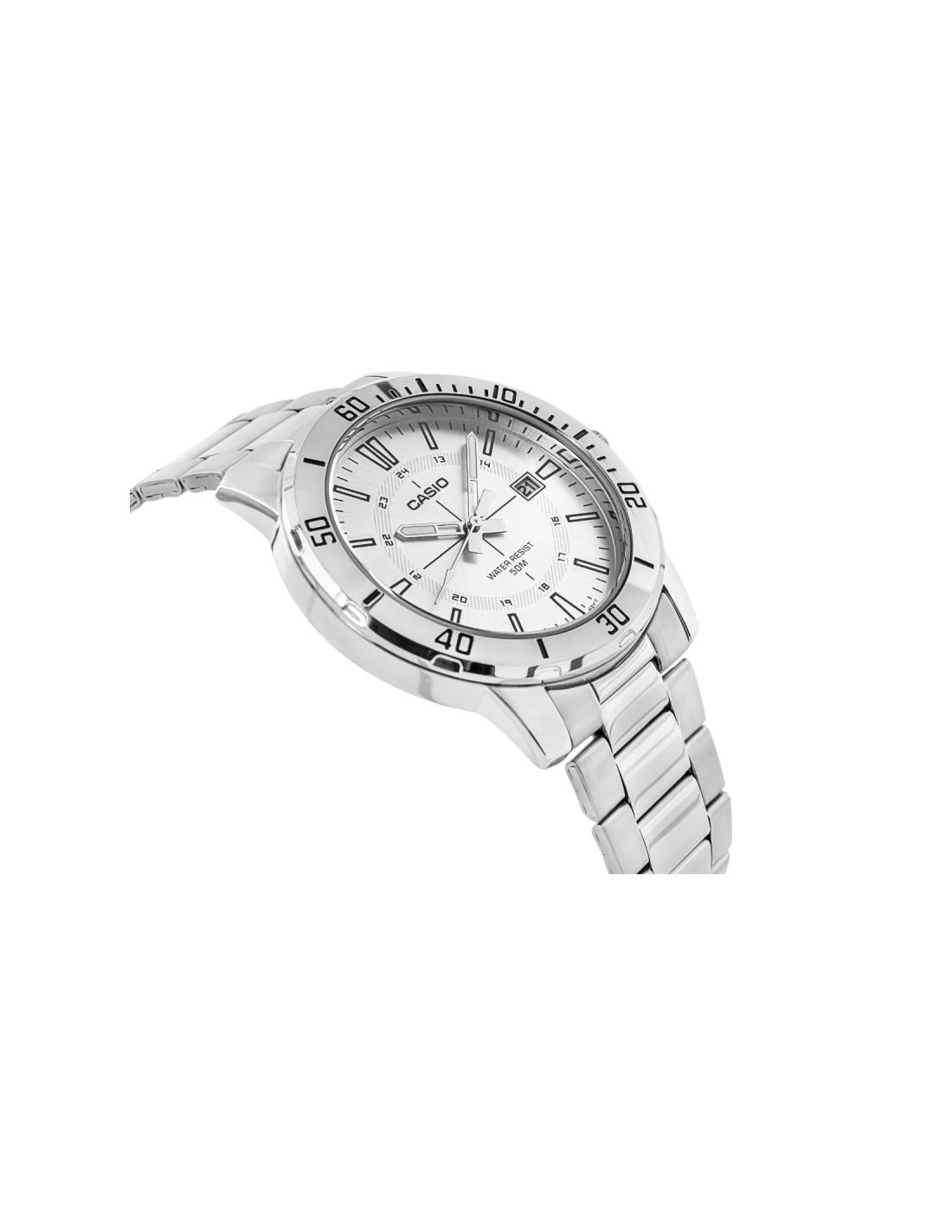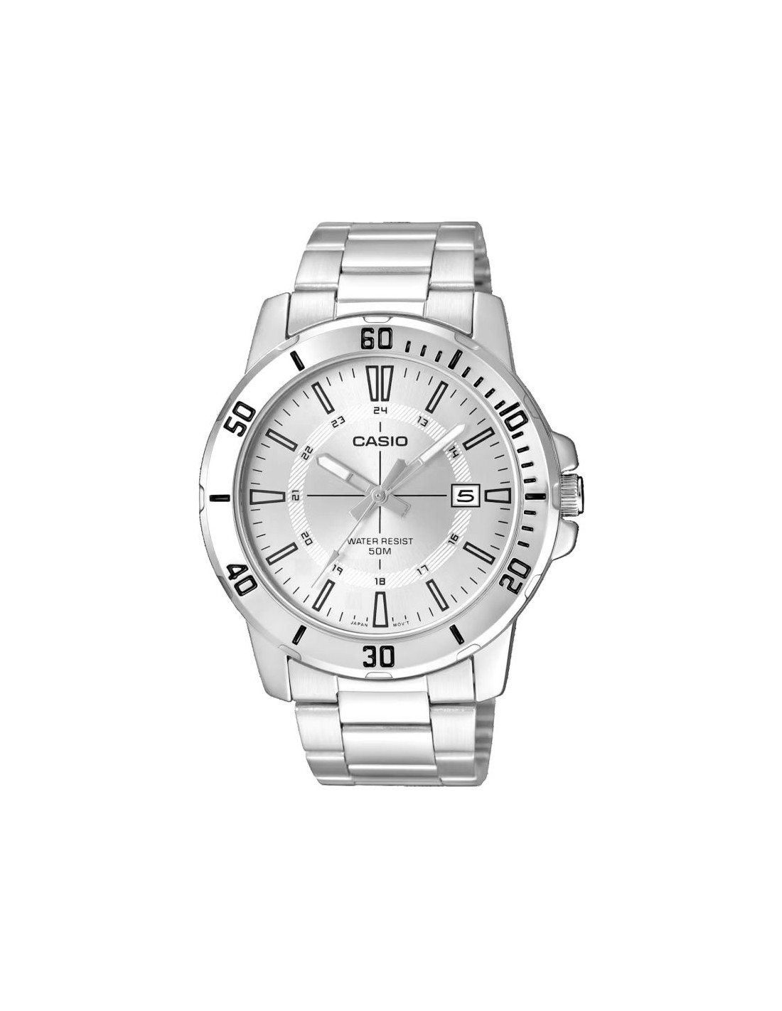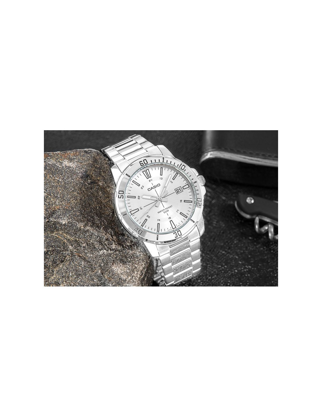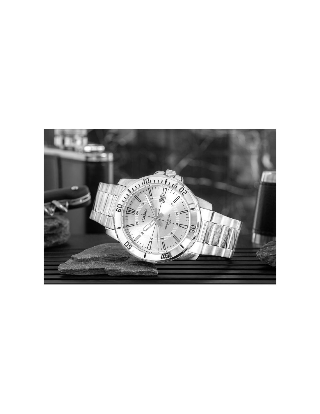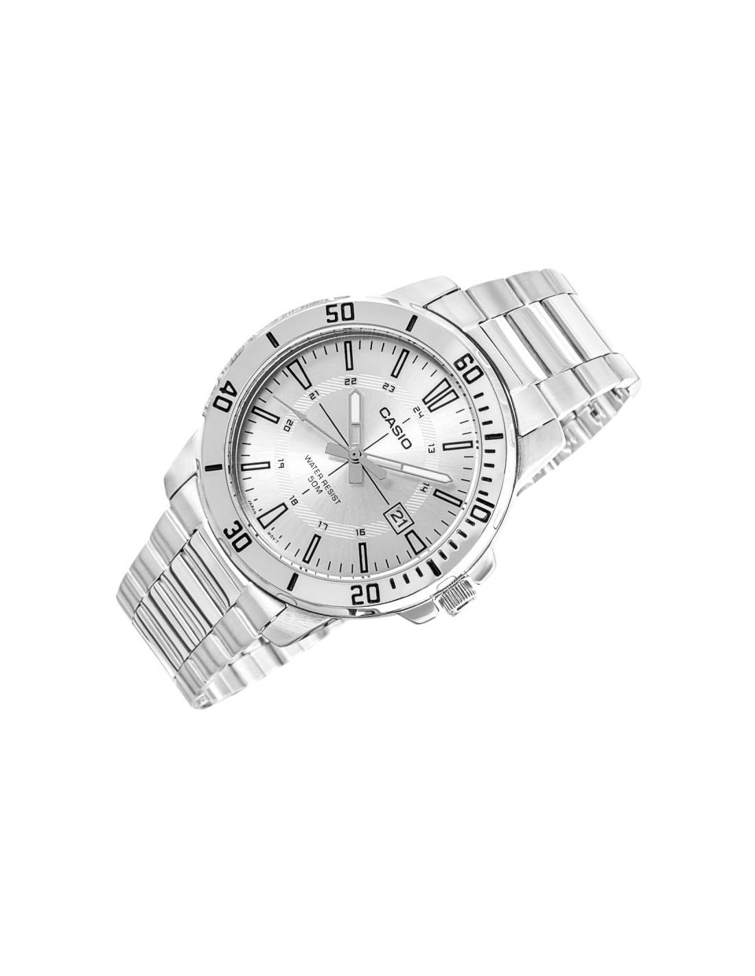 Klasyczny męski model z kolekcji CASIO wyposażony w solidną, 44-milimetrową kopertę ze stali nierdzewnej, czytelną tarczę z wyrazistymi indeksami godzinowymi oraz dodatkową skalą 24-godzinną, która ułatwia orientację w czasie. Funkcjonalny datownik umieszczony przy godzinie trzeciej umożliwia szybki podgląd aktualnego dnia miesiąca, a wodoodporność na poziomie 50M gwarantuje bezpieczeństwo użytkowania w codziennych sytuacjach – od deszczu po kontakt z wodą podczas aktywności.Dzięki bransolecie z matowo-polerowanej stali szlachetnej, zegarek zyskuje elegancki charakter, który pasuje zarówno do garnituru, jak i do luźniejszego, miejskiego stylu. Mechanizm kwarcowy zapewnia precyzję i niezawodność, z której słynie marka Casio.