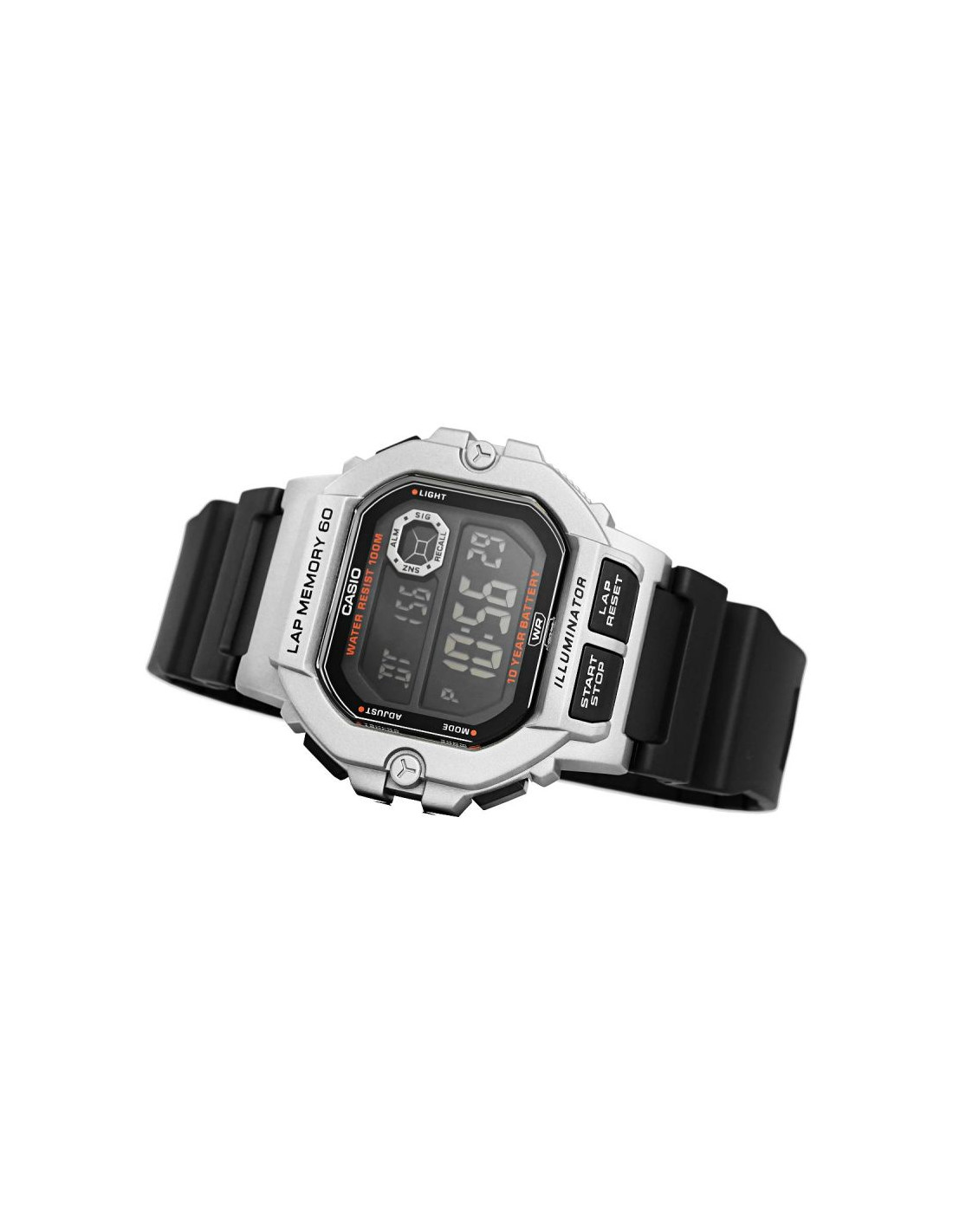 - Tarcza: Kwarcowa. Automatyczny kalendarz: rozbudowany datownik, który automatycznie dopasowuje datę w przypadku krótszych miesięcy; zegar 12/24: możliwość wyświetlania godziny w trybach 12 i 24 godzinnych; alarm: zegarek może sygnałem dźwiękowym informować 3 razy w ciągu doby + opcja sygnalizacji o pełnych godzinach; stoper: 1/100 mierzy czas do jednej setnej sekundy