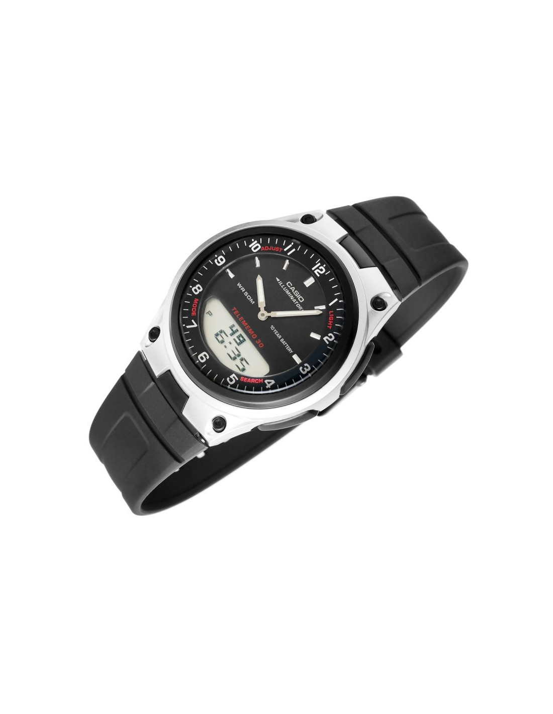 Zegarek Casio AW-80-1AVDF oferuje funkcje takie jak podwójny wyświetlacz (analogowy i cyfrowy), Telememo 30 do zapisywania kontaktów, alarmy, stoper, timer oraz możliwość śledzenia czasu w 30 strefach czasowych. Dodatkowo posiada wodoszczelność WR50M, baterię o żywotności do 10 lat oraz podświetlenie Illuminator do odczytu w ciemności.