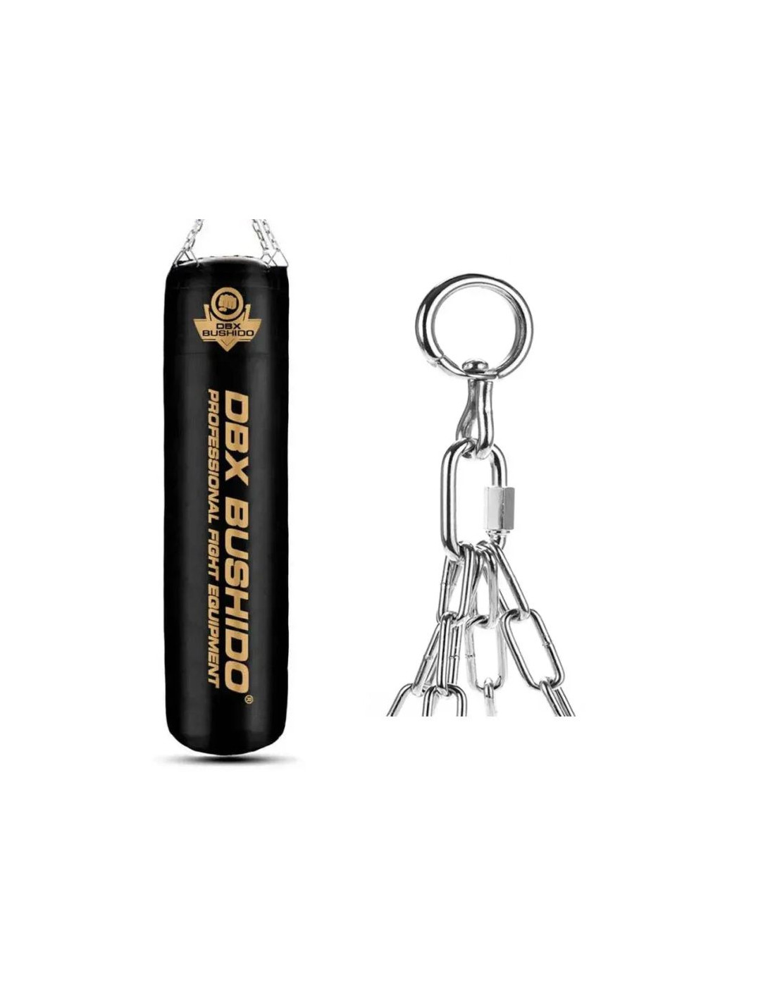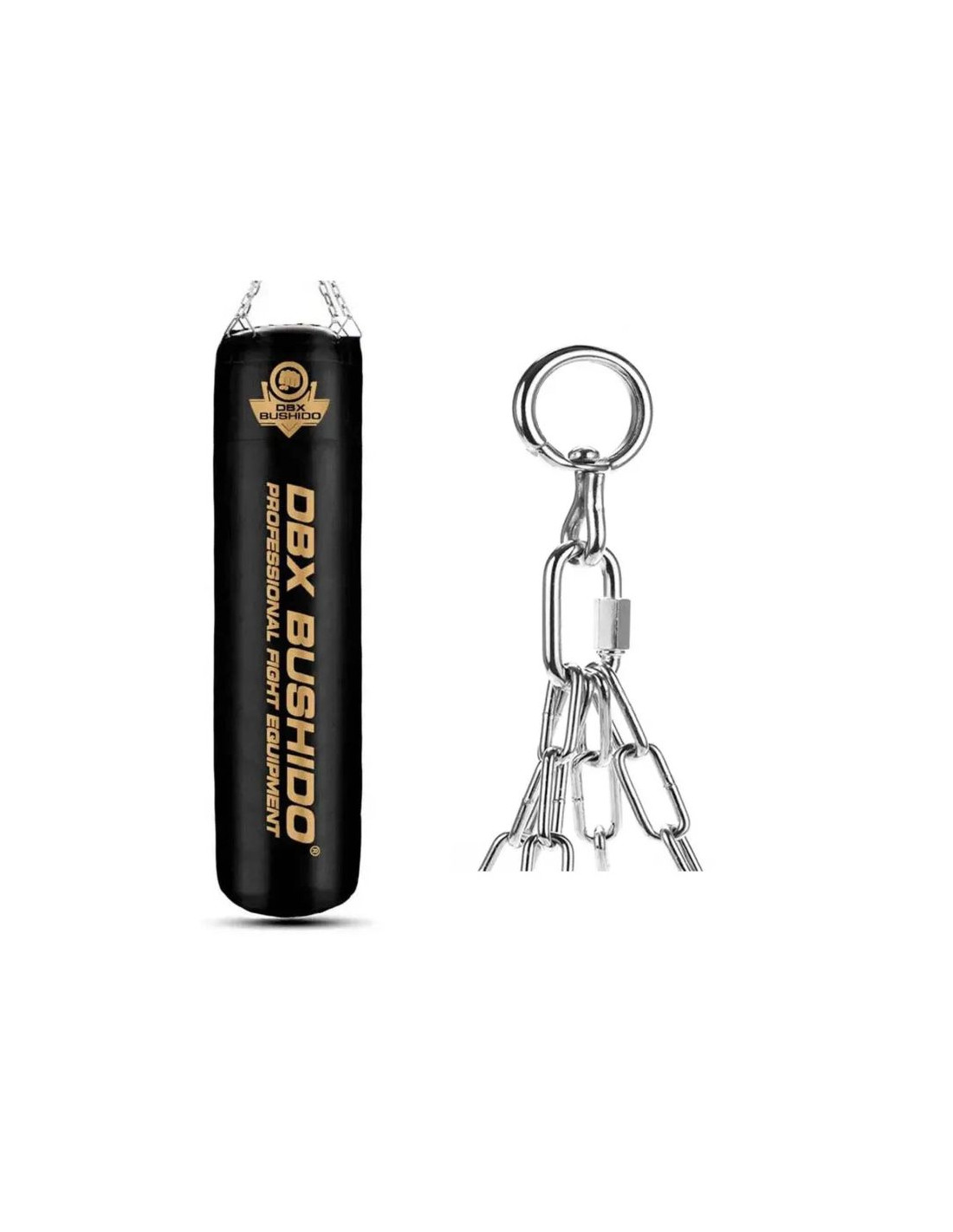 Wraz z workiem otrzymujesz zestaw łańcuchów oraz okrętkę, która zapobiega skręcaniu się łańcuchów podczas treningu.